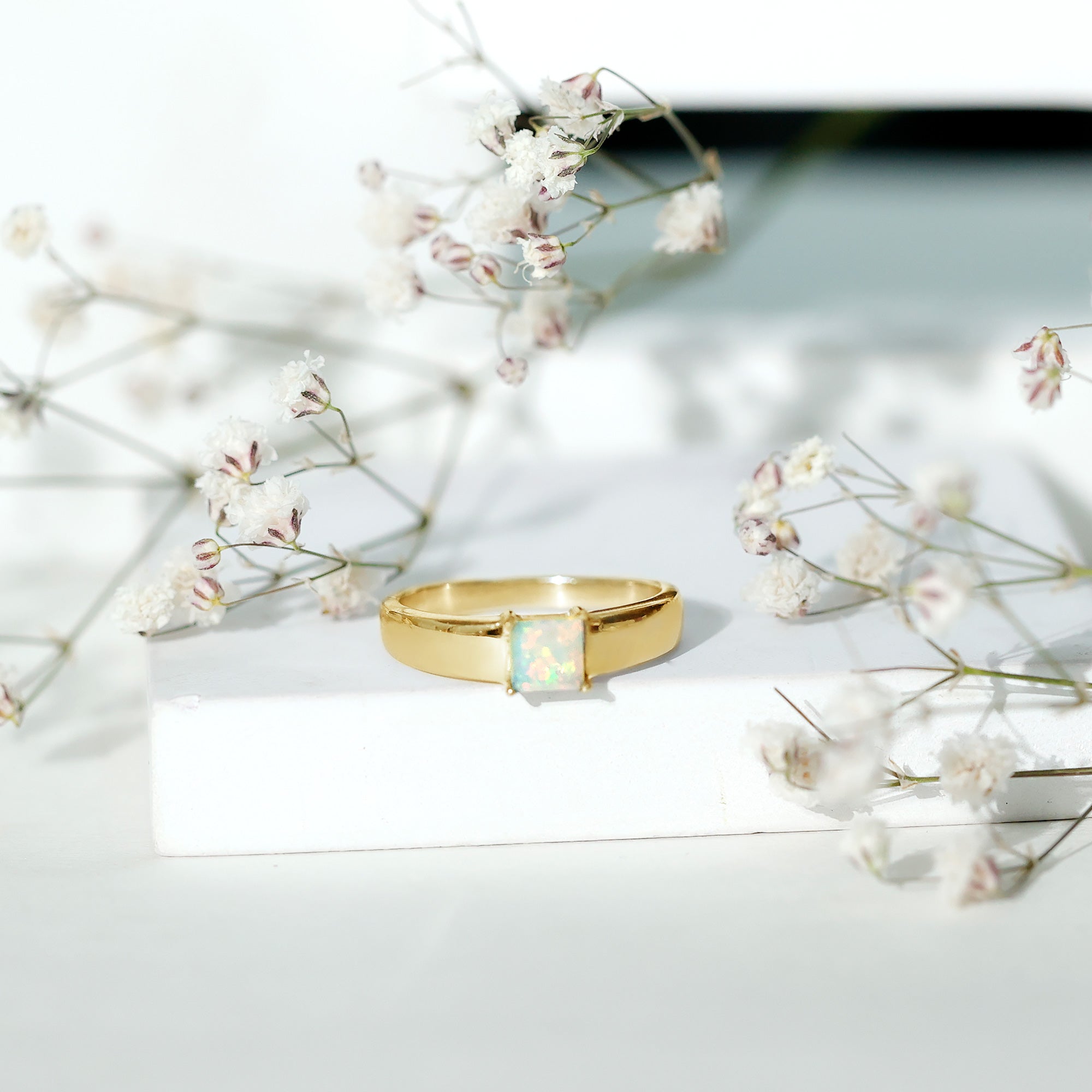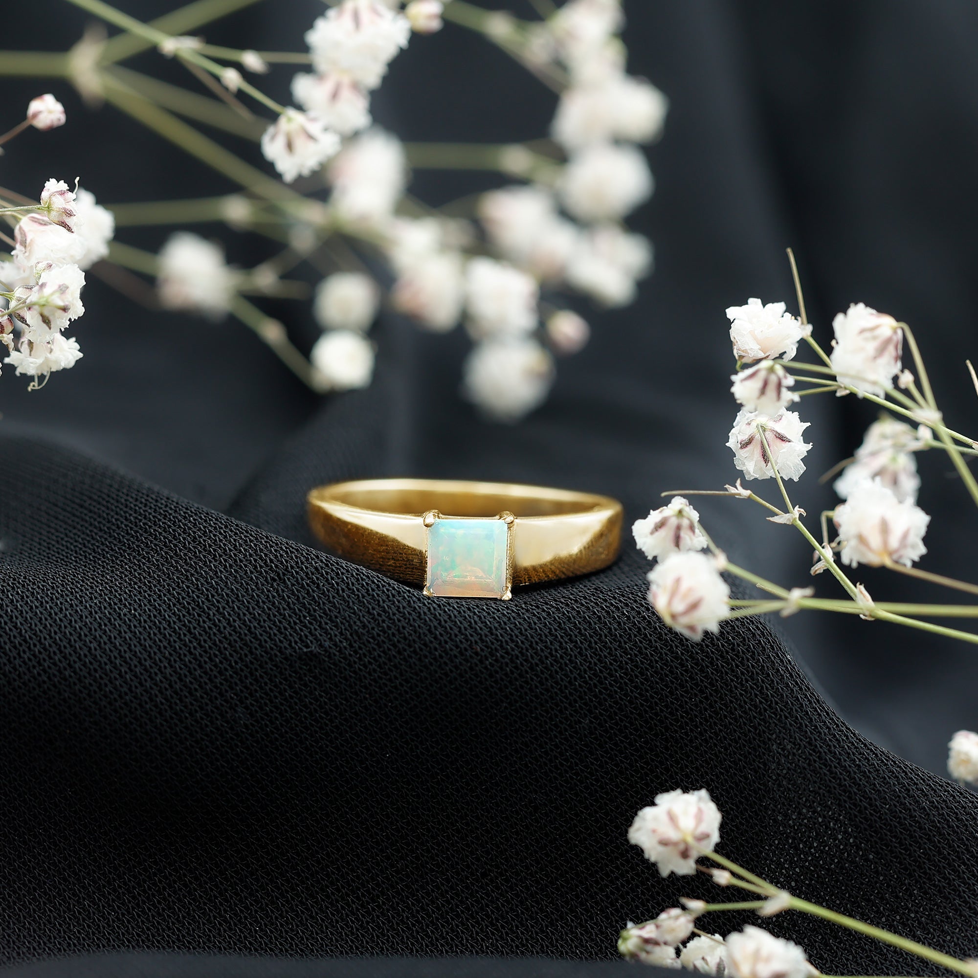 Ethiopian rainbow opal is admired for its shifting flashes of color that appear under different lighting conditions. As a natural gemstone, each opal displays individual patterns and variations, ensuring that no two rings are exactly alike. Suitable for mindful daily wear, opal benefits from gentle handling and protective storage to help maintain its surface and structure.