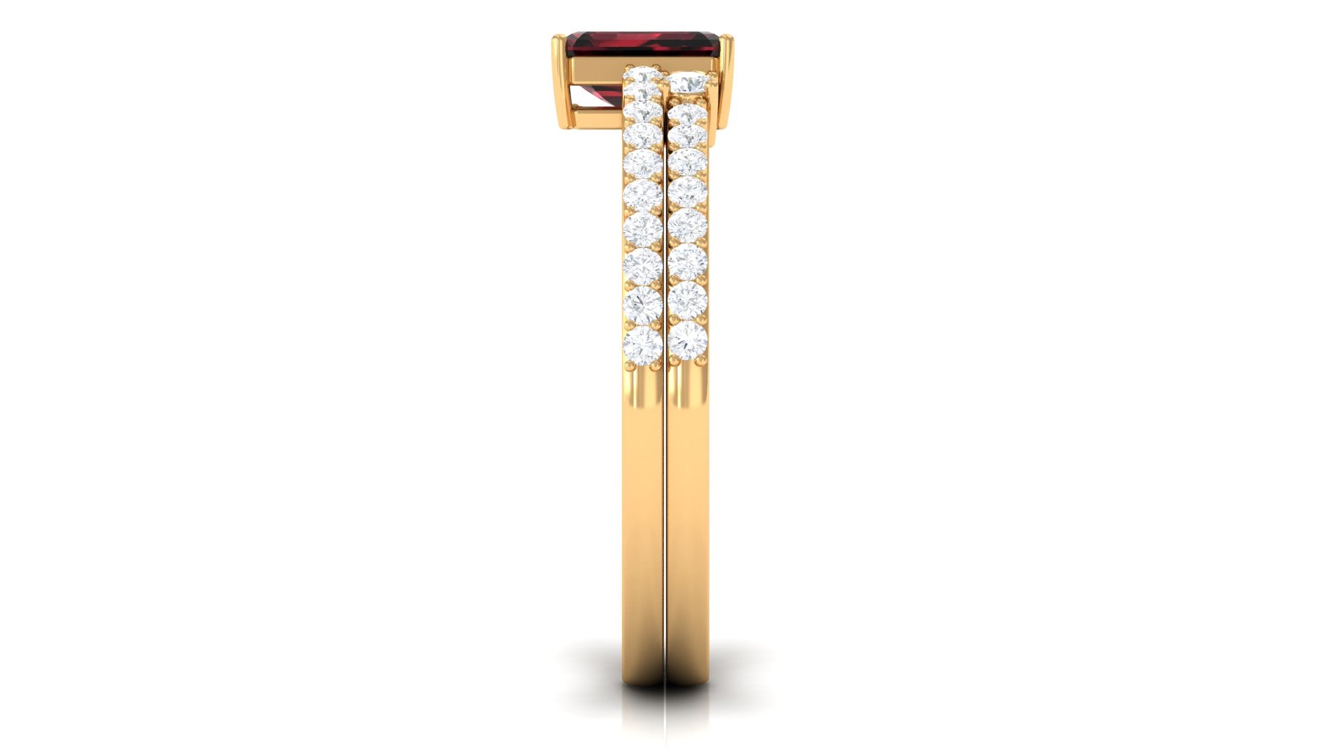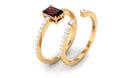 Certified Real Garnet Diamond Emerald Cut Engagement Ring with Wedding Band Cuff