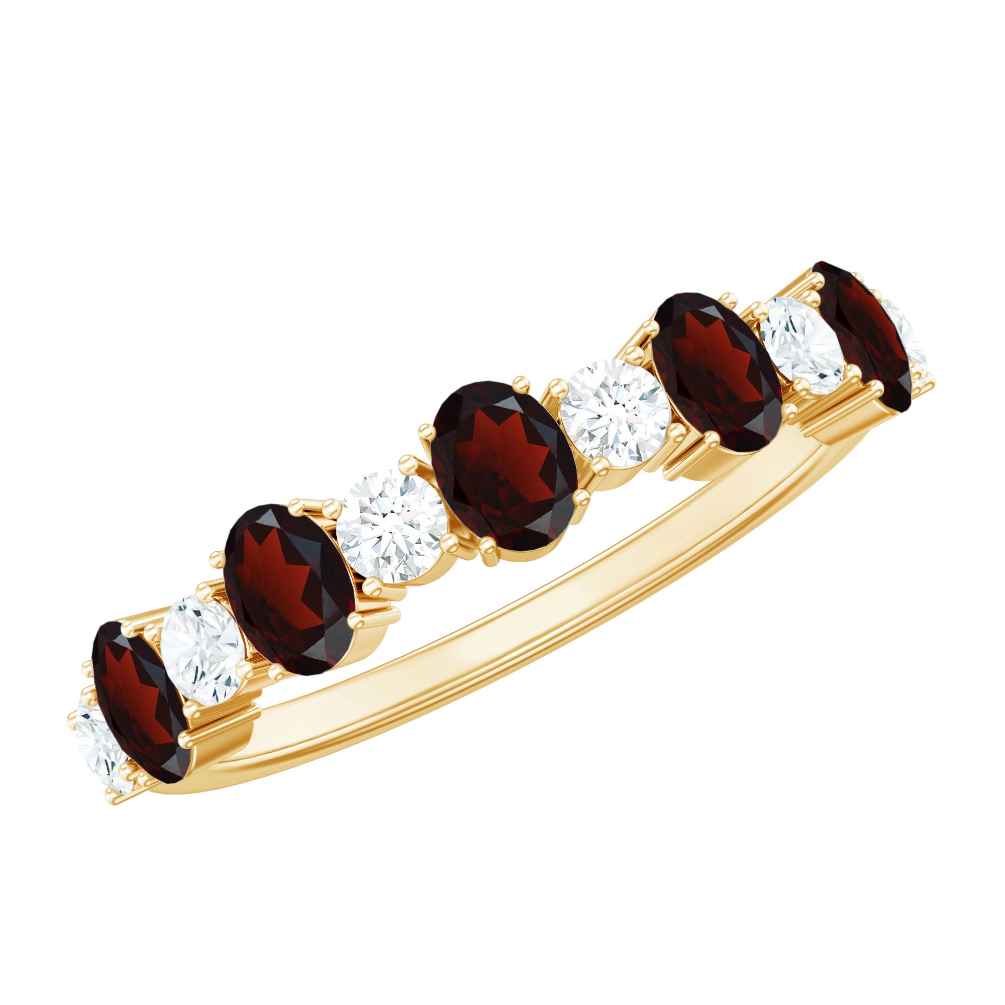 Unveil a love that glows beautifully with this Half Eternity Ring, crafted to make every anniversary feel unforgettable. The rich red hue of the 3X5mm Oval Shape Garnet stones speaks of deep emotion and lasting devotion, while the delicate Round Shape Diamond stones placed between them add a soft, timeless sparkle. Together, they create a graceful rhythm of passion and light, capturing the story of two hearts that choose each other every day. The design feels modern yet romantic, making this Garnet Diamond Ring just right for someone who appreciates elegance with a meaningful touch. Whether worn alone or stacked with other favorites, this Oval Eternity Ring brings a warm charm to every movement of the hand. Arriving in a signature jewelry box and offered in various ring sizes, this Garnet Eternity Ring is prepared to be gifted with love and received with joy. Let it symbolize love that grows stronger, brighter and more beautiful with time.