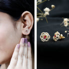 Certified Real Ruby Diamond Flower Stud Earrings with Screw Back