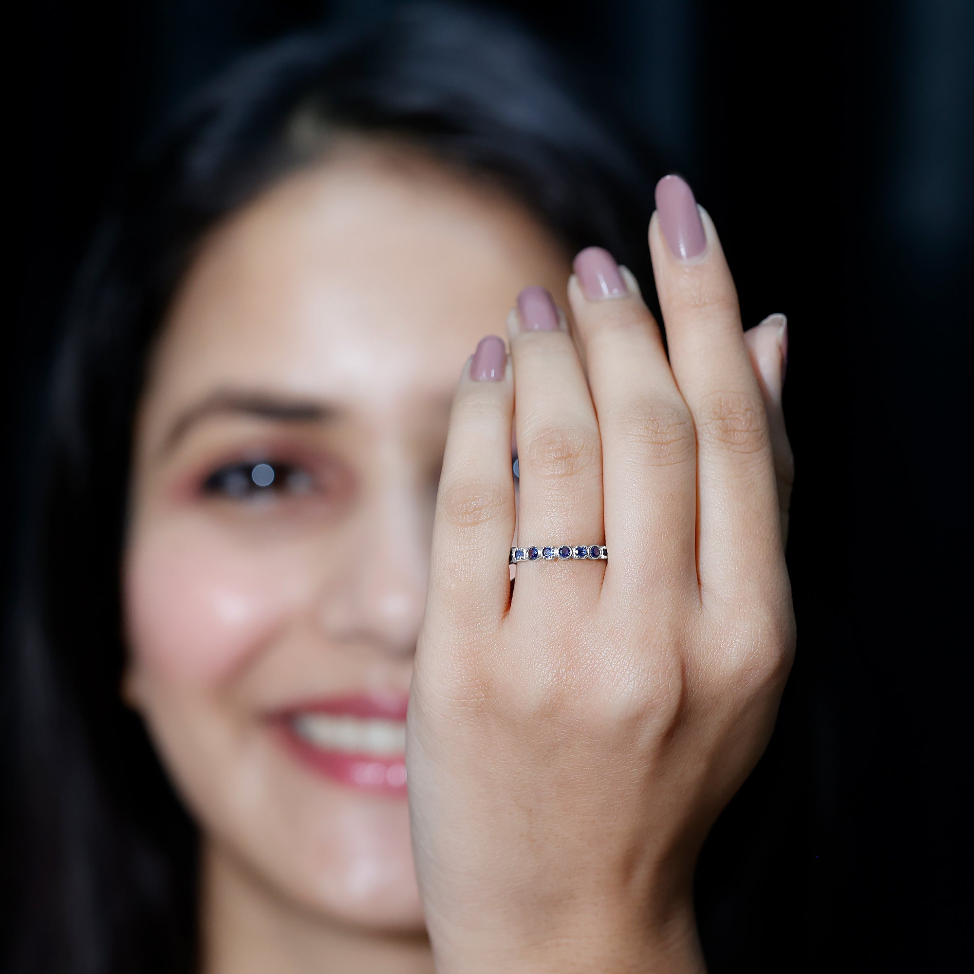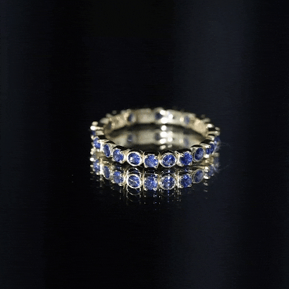 Add a flair of charm to your look with this sparkling Stackable Band Ring adorned with Round Cut Created Blue Sapphire. The ring is crafted with precious metal to create a luxurious appeal. This Full Eternity Ring will make her flaunt a gorgeous glare if the ring is wrapped around her finger. This Layering Ring is handcrafted precisely and gives a charming appeal to the ring. This Stackable Eternity Ring will be delivered to you in premium quality packaging with the certification of gemstone authentication.
