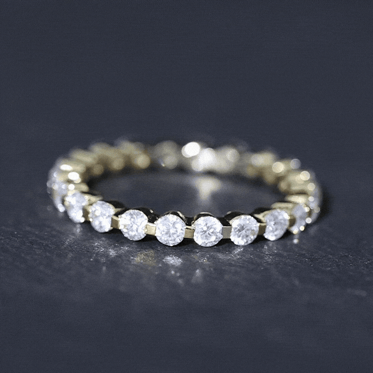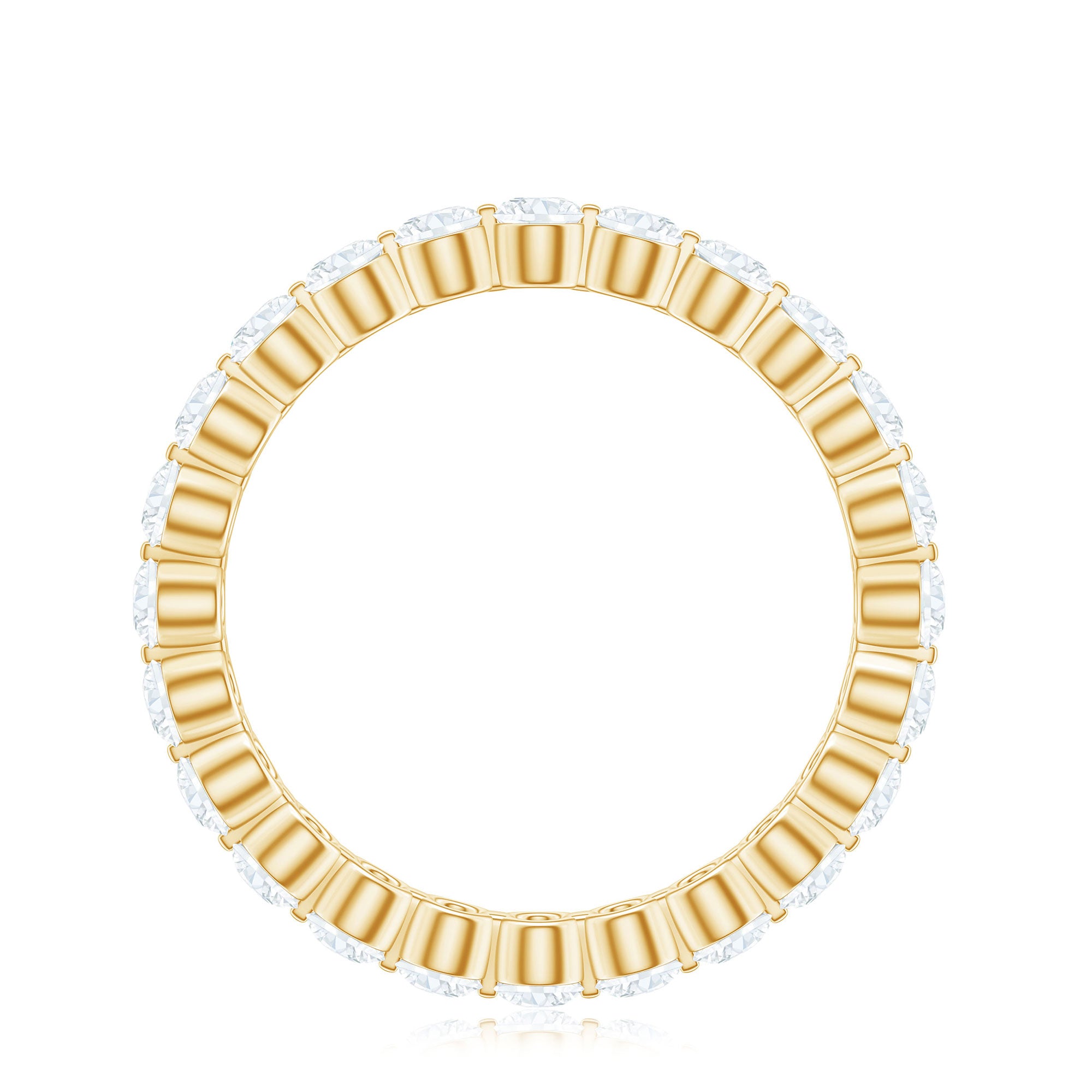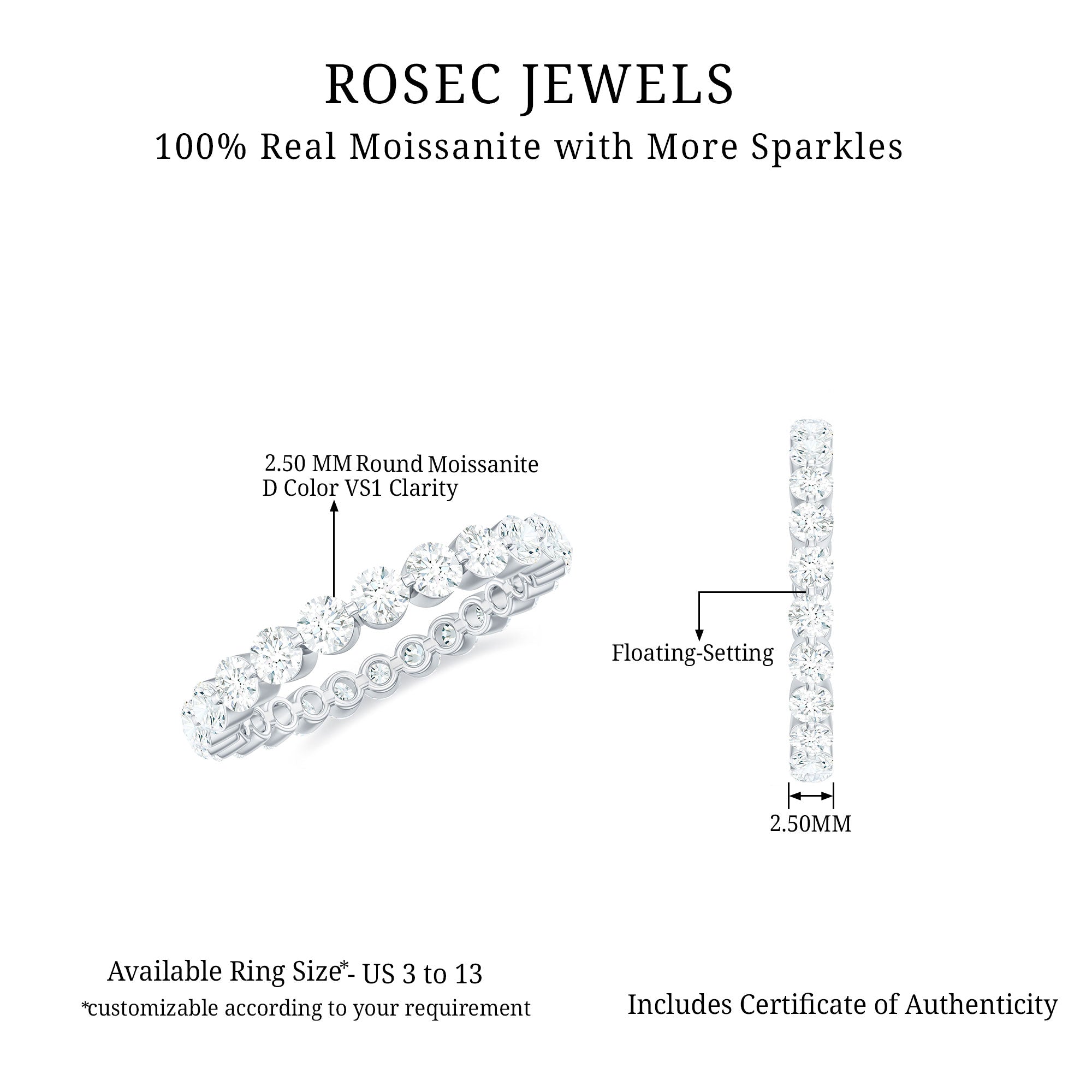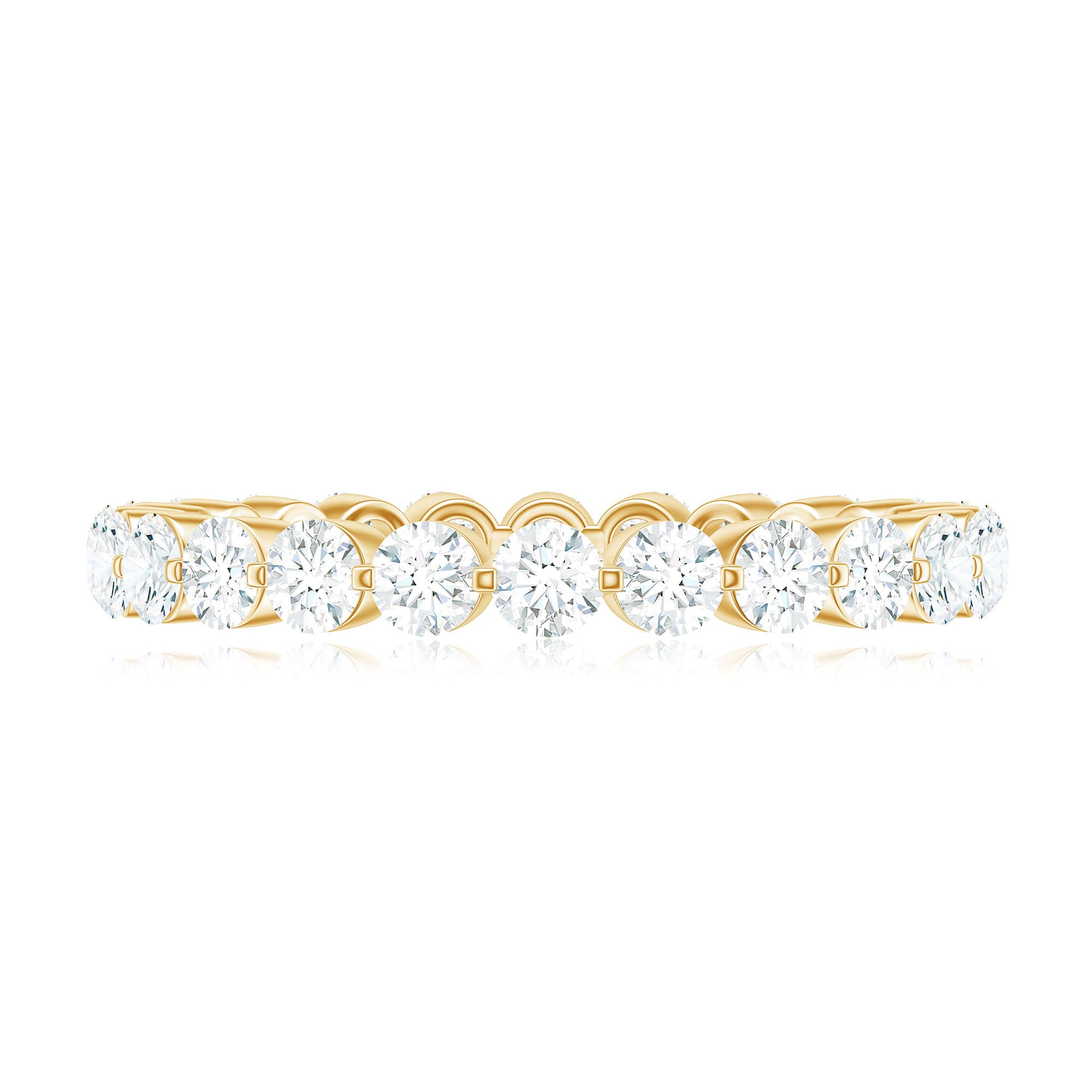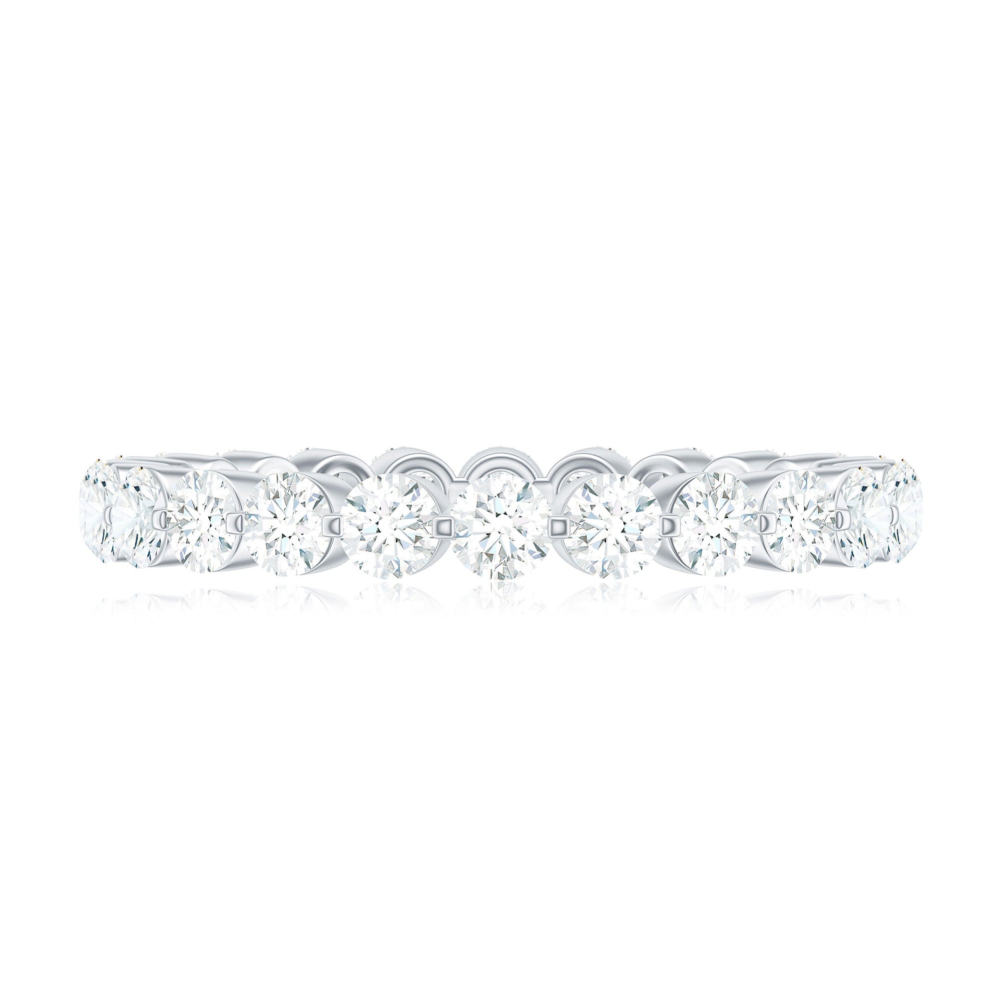 This classic Moissanite Eternity Band is the perfect choice for your special day. The band features Round Shape Moissanite delicately placed in Prong Setting. Express your feelings to your special one by presenting this Wedding Anniversary Band. The adorable shine of the D-VS1 Moissanite embedded in the ring will be a standout addition to your jewelry vault. This band is a minimal yet classic representation of your bond with your partner. This Round Eternity Ring can be styled solely to get a minimal look or can be stacked with the statement ring to get a signature look.