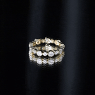 Radiating elegance from every angle, this Moissanite Eternity Ring is the perfect mix of timeless sparkle and modern design. Set with alternating 2 MM and 3 MM round cut moissanite stones in bezel setting all around the band, it creates a beautiful rhythm of shine and style. Each D-VS1 quality moissanite catches the light with incredible brilliance, making this Eternity Wedding Band a stunning choice for weddings, anniversaries, or any special moment you want to celebrate. The full eternity design stands for never-ending love, making it a truly meaningful gift. Whether you wear it on its own or stacked with your favorite rings, this Bezel Set Eternity Ring adds a soft, glowing touch to both everyday outfits and dressy looks. It is comfortable to wear, thoughtfully made, and designed to last a lifetime. Your Moissanite Wedding Band arrives in an elegant jewelry box, ready to gift and ready to impress. With its unique sparkle and smooth, uneven design, this Moissanite Stackable Ring is a simple yet powerful symbol of love, beauty, and forever.