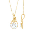 Adorn your neckline by wearing this Minimal Diamond Pendant Necklace. This captivating Teardrop Pendant Necklace is adorned with a 6 mm Round Shape Diamond of Ef-Vs quality set in prong setting in the center, the Drop Pendant is further beautified with dainty lab grown diamonds and features a delicate leaf motif. The minimalist design exudes timeless charm, making this April Birthstone Necklace a versatile accessory for any occasion like - anniversaries, birthdays, and Valentines Day. Elevate your look with this enchanting Man Made Diamond Necklace from Rosec Jewels, where sophistication meets conscience.