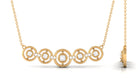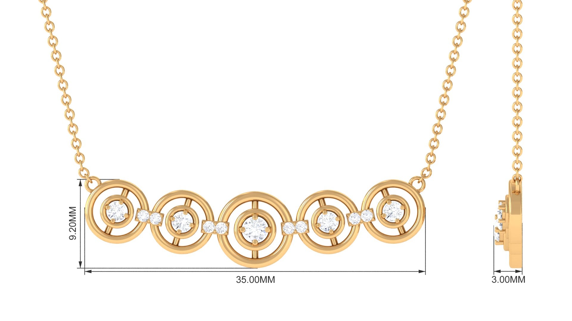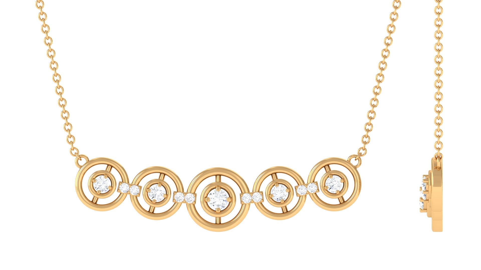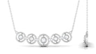 Enhance your neckline with the brilliance of this exquisite Moissanite Necklace, a piece that radiates elegance and charm in every shimmer. Designed for women who appreciate contemporary sophistication, this stunning Bar Necklace features a gracefully curved arrangement of five circular frames, each holding a dazzling moissanite stone set in prong setting at its center. The intricate geometric design symbolizes unity and eternity, making it not just a fashion statement but a meaningful keepsake. You can have confidence in the quality of our offerings, as each piece is accompanied by a certificate of authenticity.