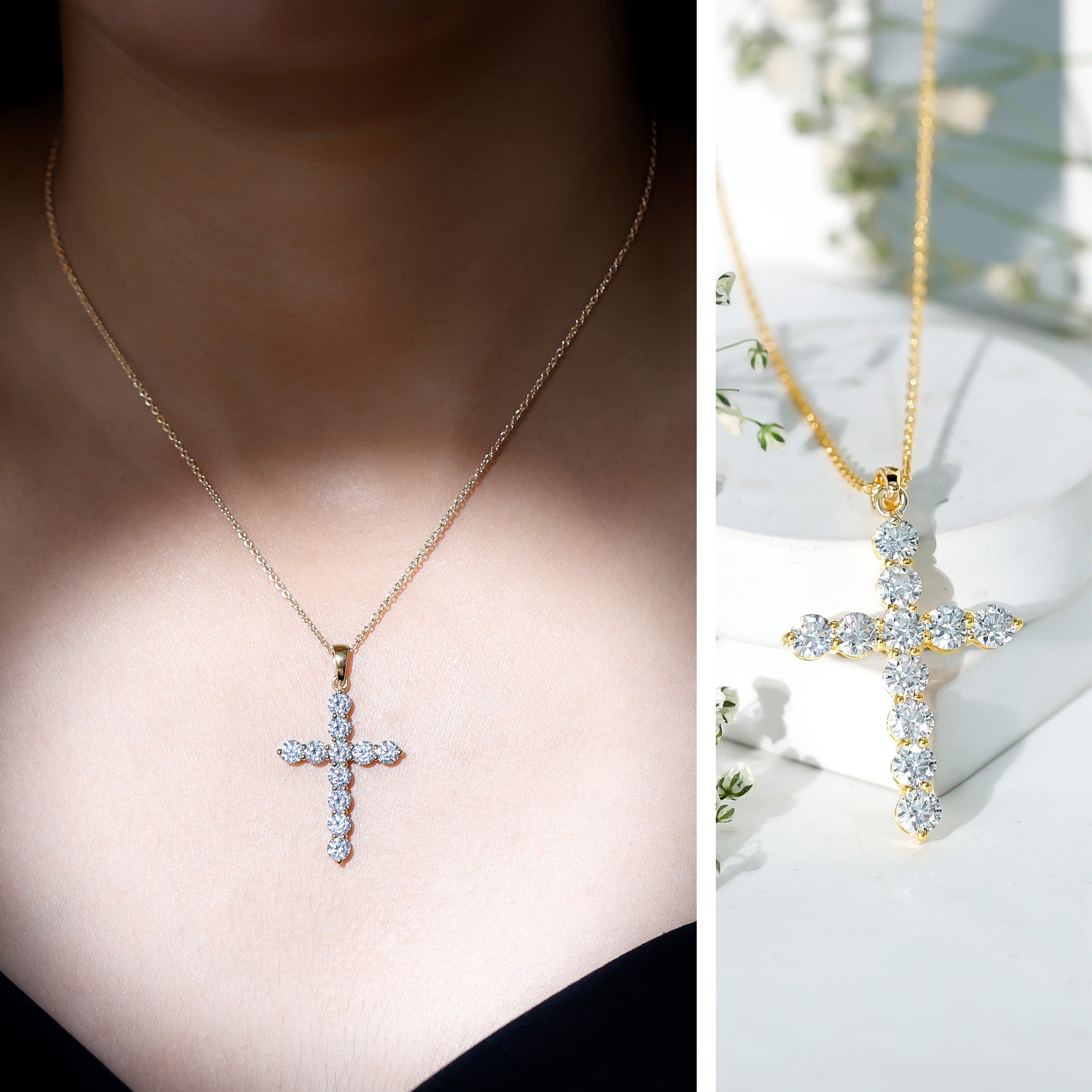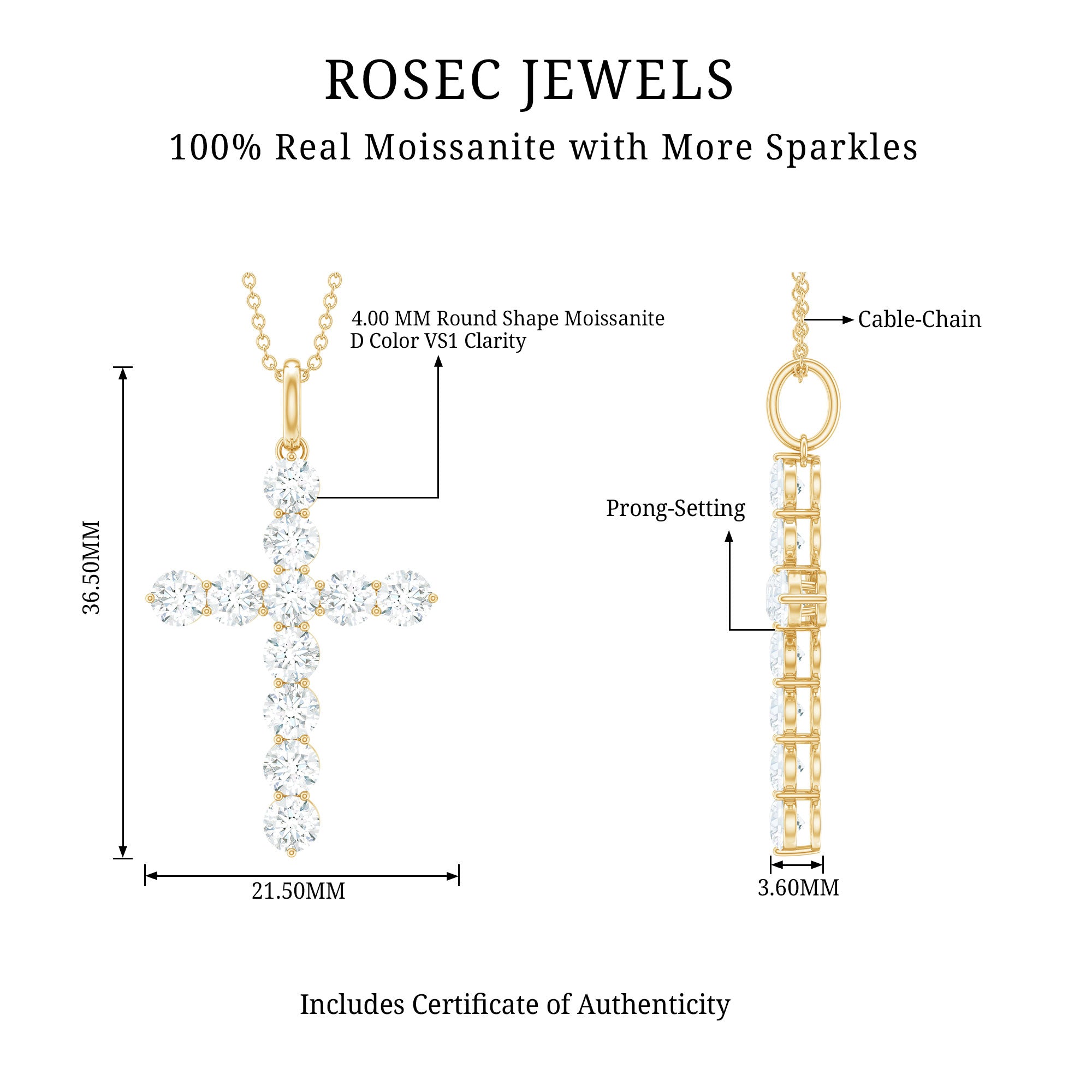 Invoke your belief with this Moissanite Cross Pendant. It is embellished with sparkling Round Shape Moissanite in prong setting. Cross Pendant Necklace is the versatile stylish accessory for women. This beautiful Christ Pendant dangles in an cable chain which perfectly makes it sit on the neckline. Being an symbolic design, it can be worn by both men and women. Grab this christmas pendant to celebrate your belief, it will be delivered to you in the premium box for further storage.