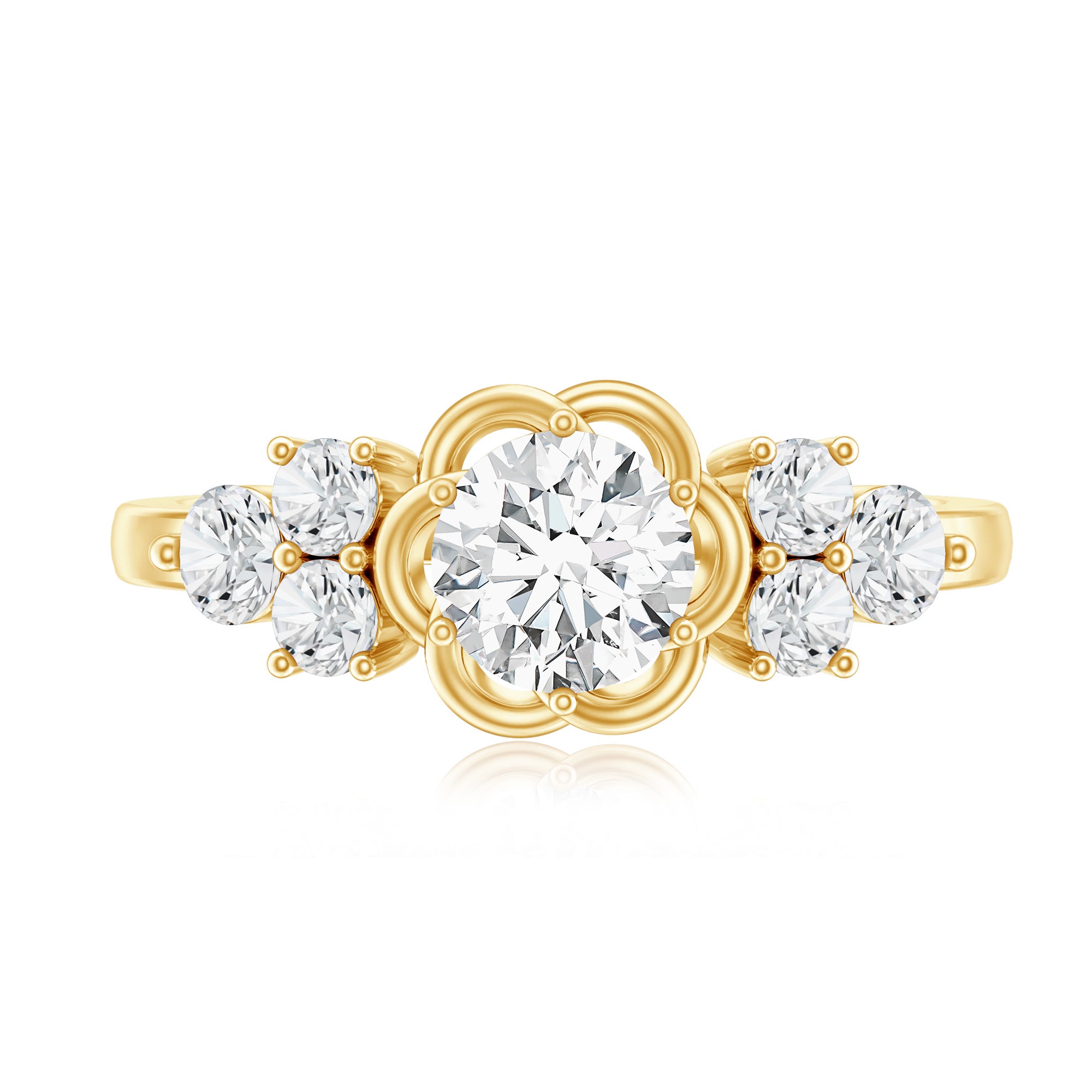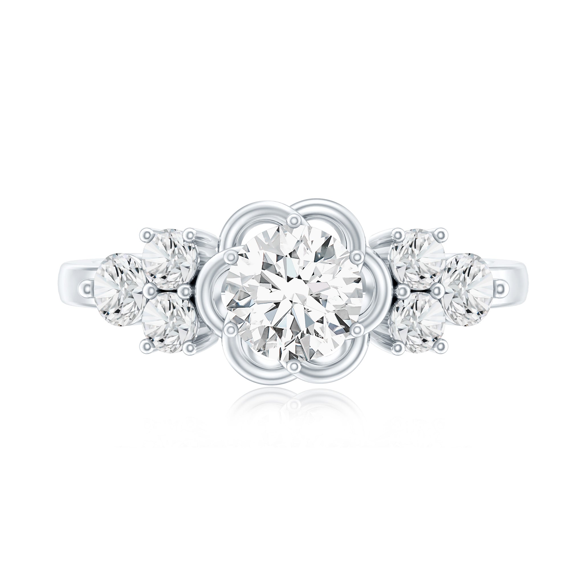 Certified Round Moissanite Flower Engagement Ring