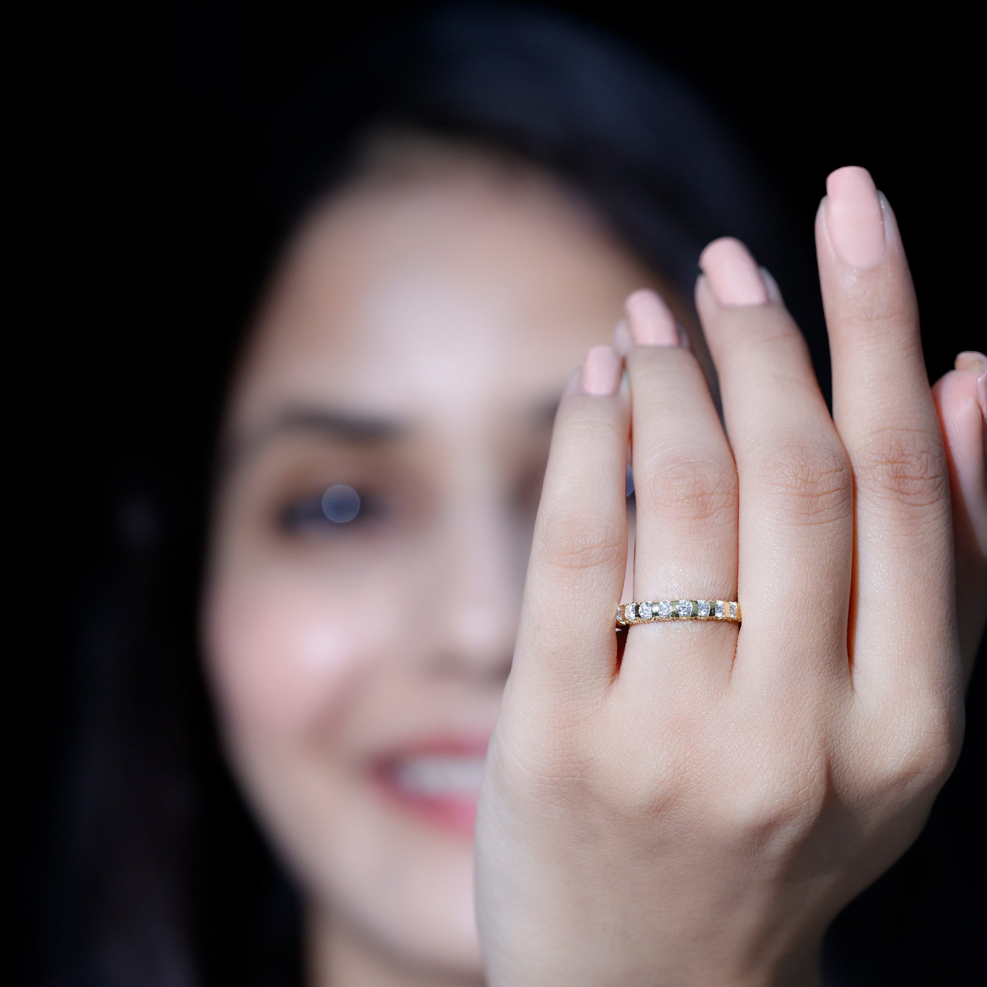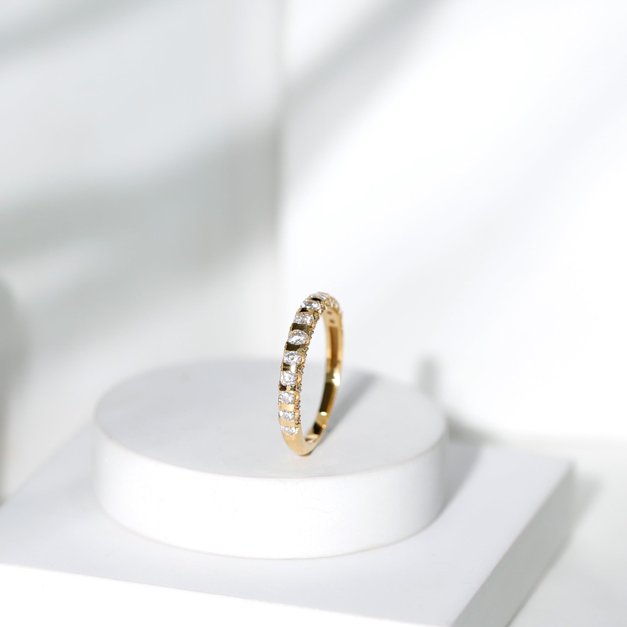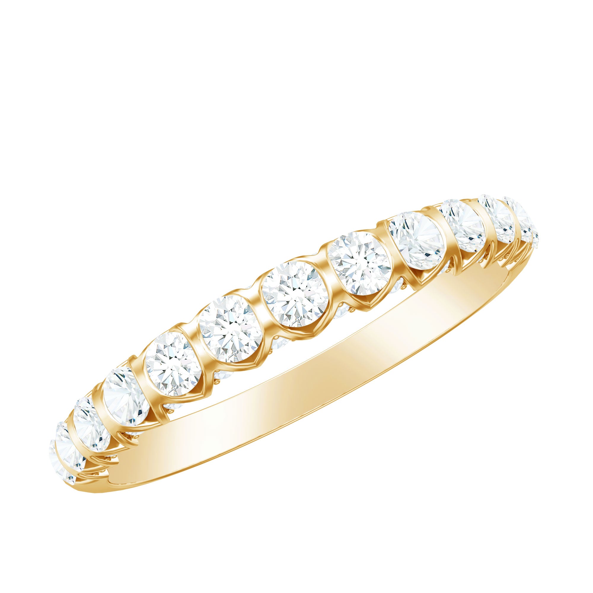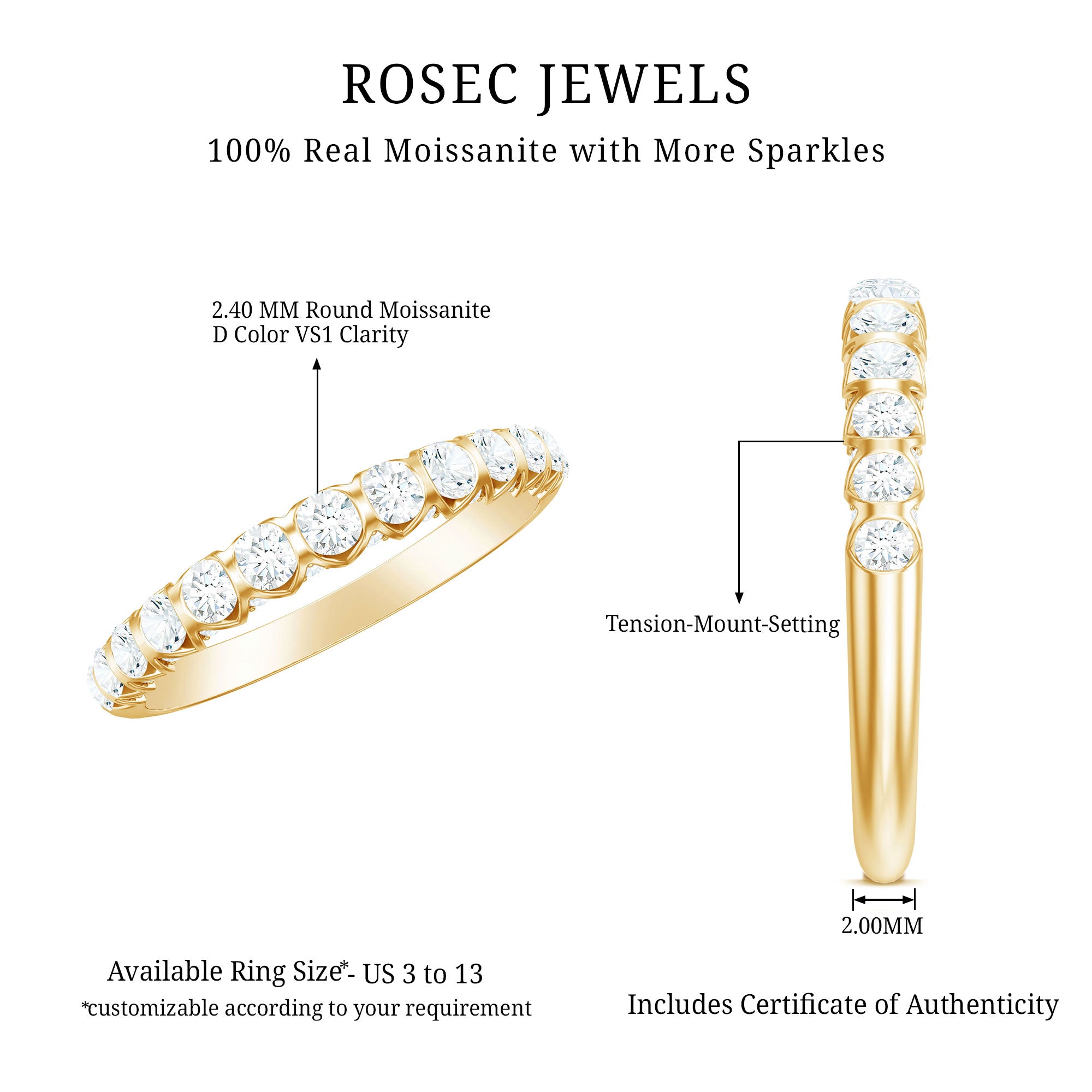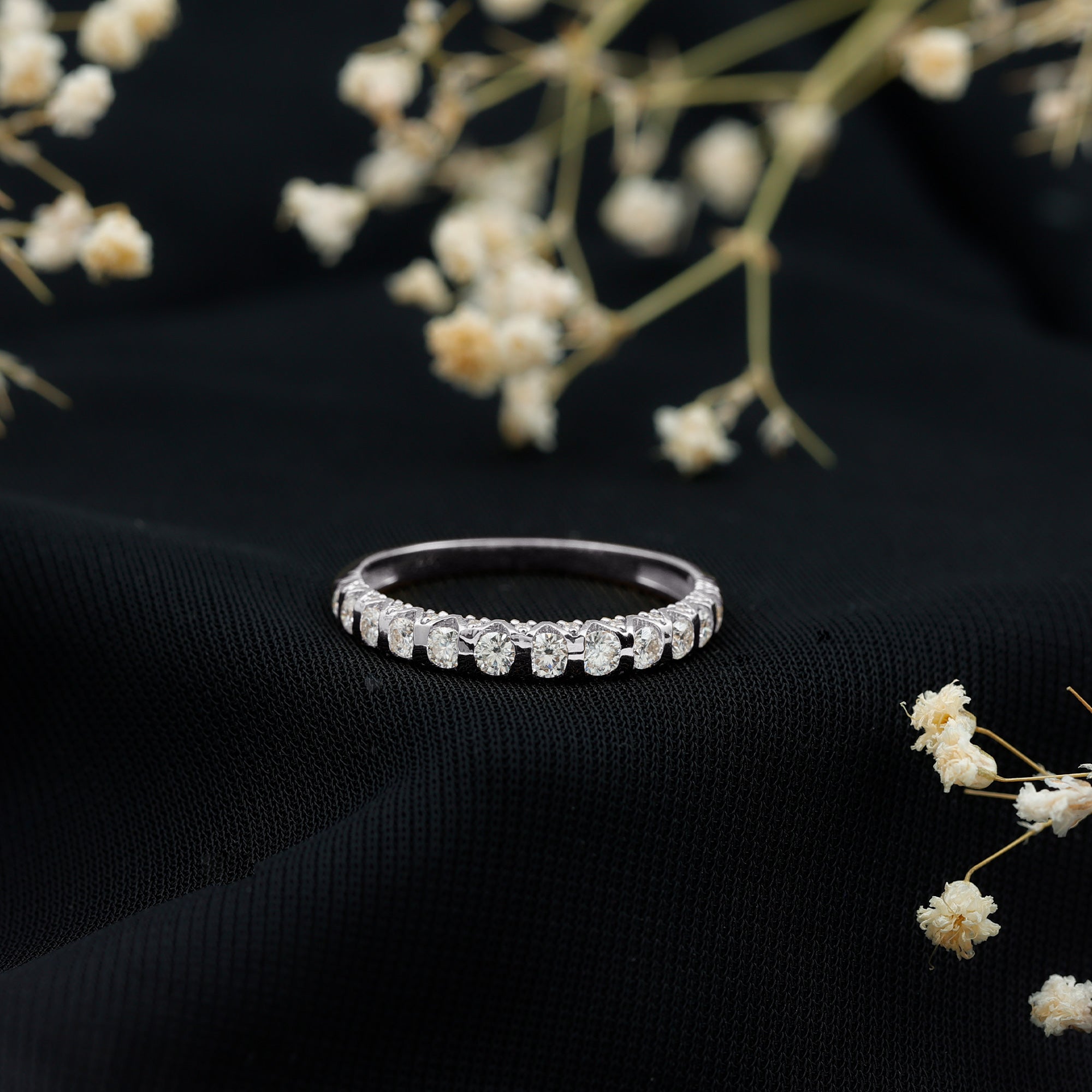 Surprise someone special with this beautiful Moissanite Half Eternity Ring, designed to shine with simple elegance. The ring features round cut moissanite stones set along half of the band, creating a graceful sparkle that catches the light from every angle. The simple design makes it easy to wear while still feeling eye-catching. This Moissanite Stackable Ring works perfectly as a wedding band, anniversary ring, or a meaningful gift to mark an important moment. Its half eternity style offers comfort for daily wear while still delivering plenty of shine. The band allows it to sit nicely on the finger without feeling heavy. Versatile and stylish, this Moissanite Wedding Band can be worn on its own for a simple look or stacked with other rings for a layered style. It pairs well with engagement rings or other bands, making it a great choice for stacking. Suitable for everyday use as well as parties and special events, this Eternity Wedding Band adds a sparkle to any outfit. Thoughtful and easy to style, it is a timeless piece that celebrates love, commitment, and special memories in a beautiful way.