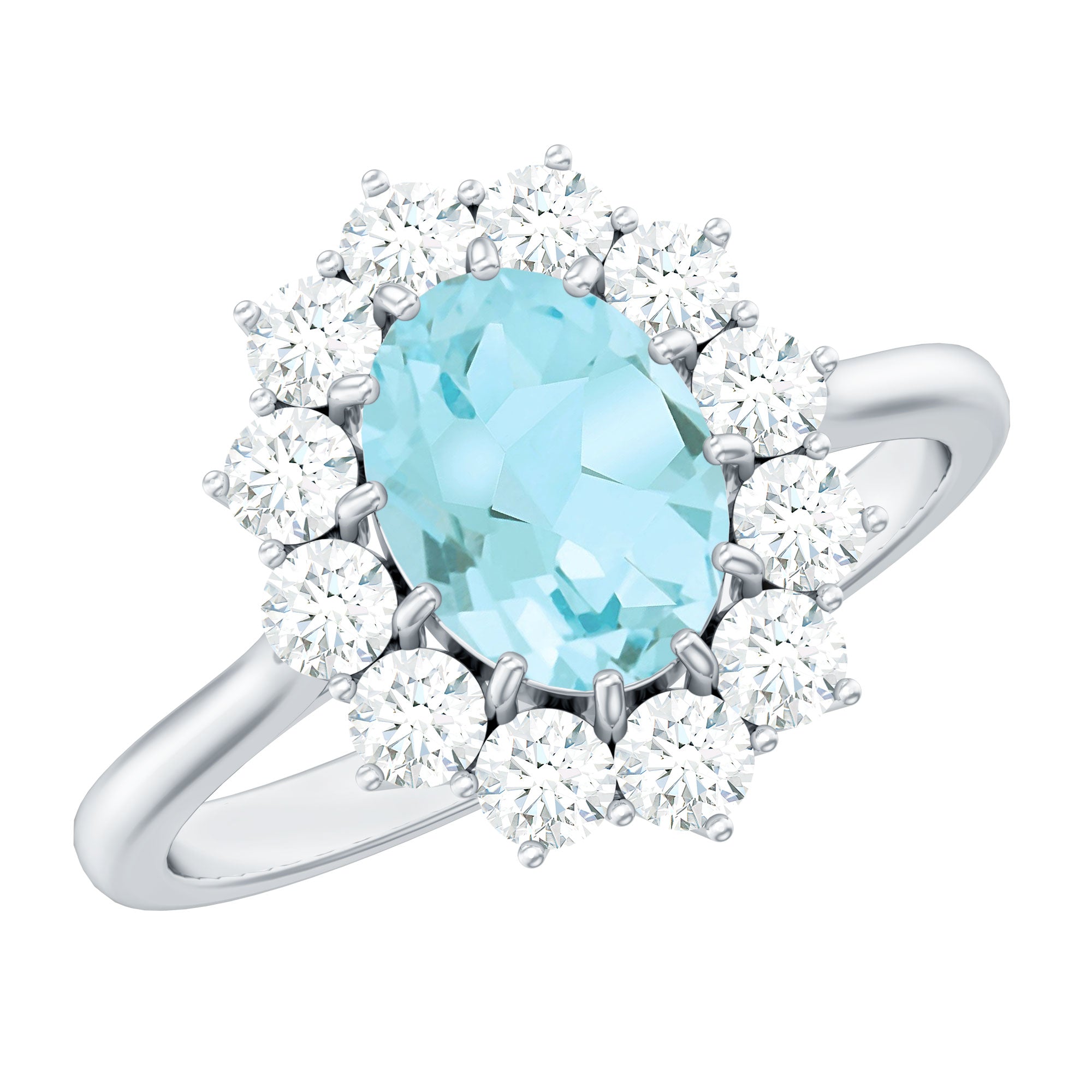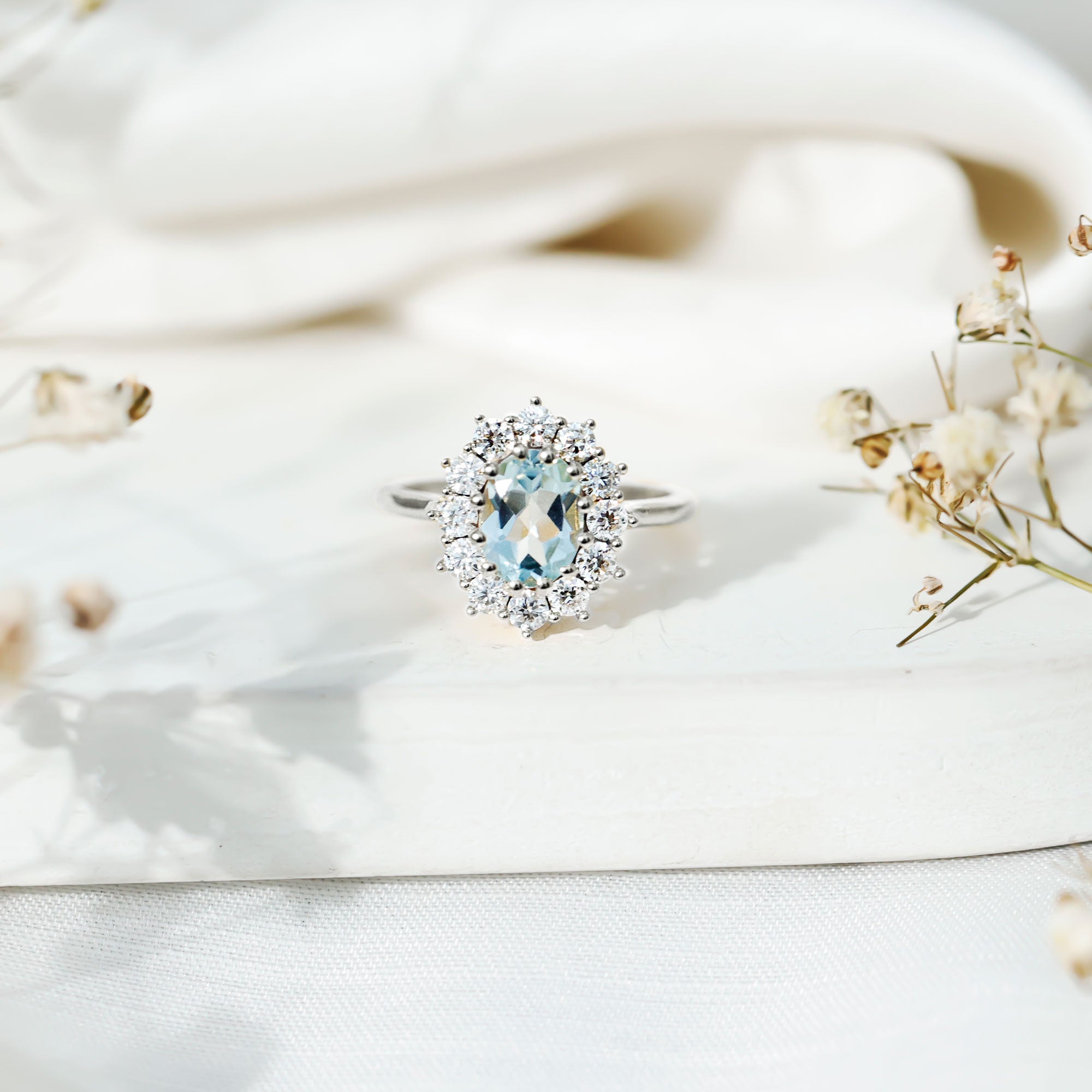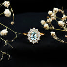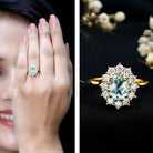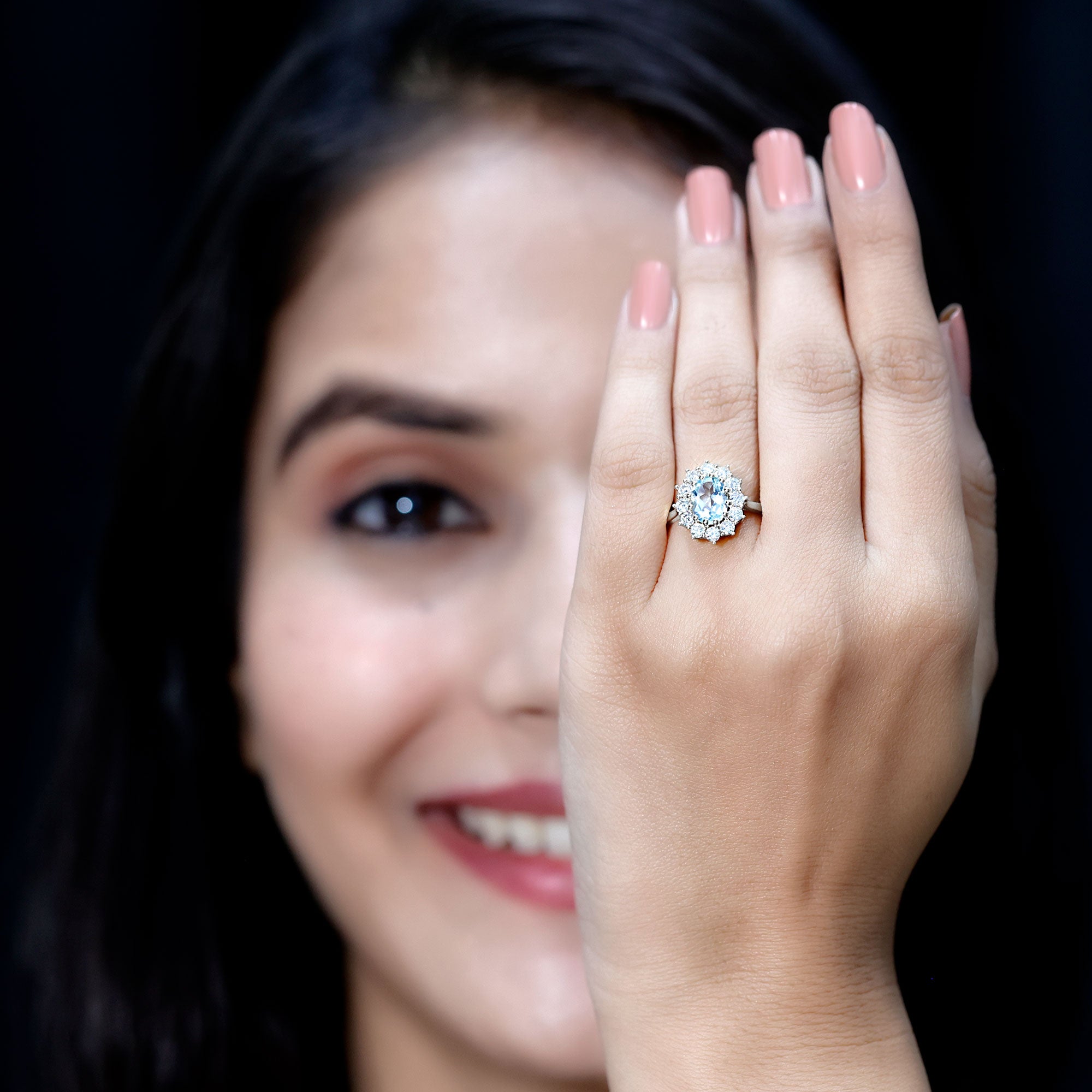 The beautiful and overwhelming choice for every bride-to-be is the stunning Sky Blue Topaz Ring, which is associated with love and eternal affection. Embellished with 6X8 MM Oval Shape Sky Blue Topaz in Prong Setting with the Round brilliant cut Moissanite Halo. So, turn heads and win hearts with this stunning Topaz Cocktail Ring, which results in a dramatic and eye-catching piece of jewelry. Having a timeless appearance, this Topaz Engagement Ring has a unique taste that would suit your personality as well. Its unique aesthetic creates a one-of-a-kind Topaz Cocktail Ring that is classic and elegant with a flair for creativity. This Topaz Statement Ring is the jewel of love that aligns with the sentiments you carry in your relationship. So, gear up your special occasions, be it your engagement, a cocktail party or any other event, it is perfect to turn heads that will never go out of style. An unforgettable sparkle, it is a heirloom piece of jewelry that can be passed down through generations.