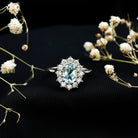 Certified Sky Blue Topaz 6X8 MM Oval Engagement Ring with Moissanite Halo