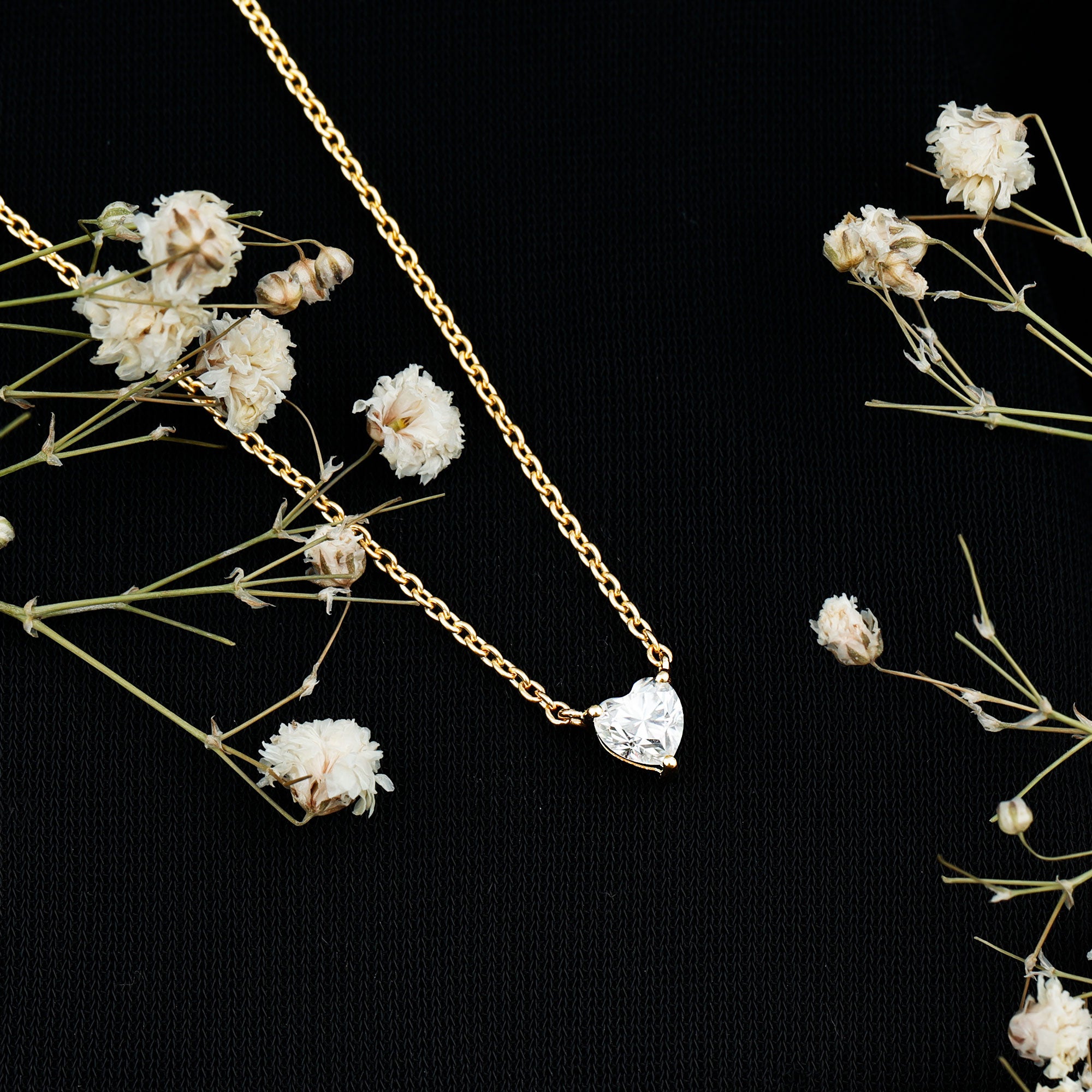Add a little sparkle to your everyday style with our Heart Moissanite Necklace, curated from 14k yellow gold plated silver that perfectly blends timeless romance with contemporary artistry. At the center of this stunning piece is a brilliant 5 MM heart shaped moissanite, boasting a D color and VS1 clarity. Set in prong setting, the gemstone shines effortlessly, capturing heartfelt emotion with every look. Designed for both lasting impact and everyday wear, this Heart Pendant Necklace serves as a meaningful keepsake. Whether you wear it as a daily reminder of love or save it for special occasions, its romantic shape and polished finish make it a versatile addition to any outfit. The Solitaire Heart Necklace hangs beautifully from a delicate, adjustable chain, ensuring the perfect fit whether you wear it solo or layered with other pieces. Thoughtfully presented in a chic jewelry box, it is ready to be a cherished gift. Whether you are celebrating Valentine’s Day, a romantic anniversary, a birthday, or simply honoring self-love or friendship, this Heart Locket Necklace is a lovely gesture. A true solitaire statement, it brings joy with every wear, the kind of piece that earns compliments, sparks smiles, and makes you feel truly appreciated.