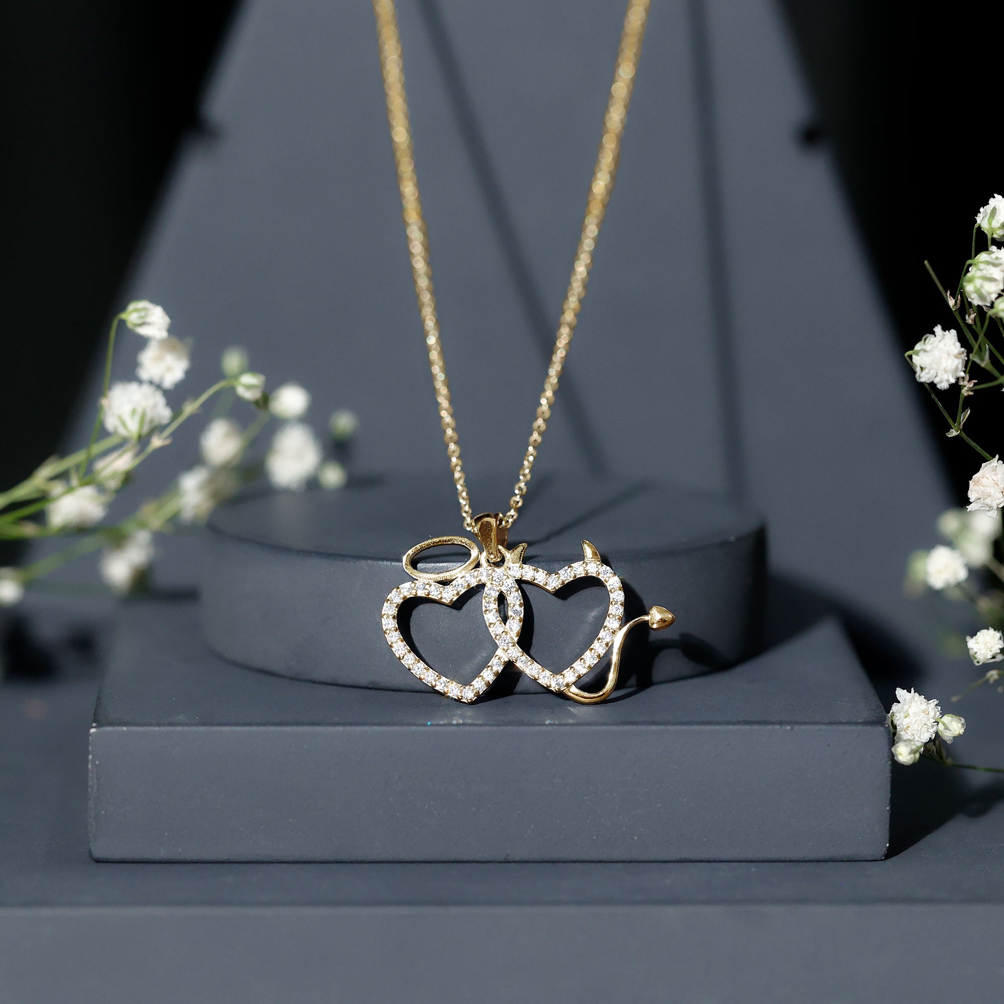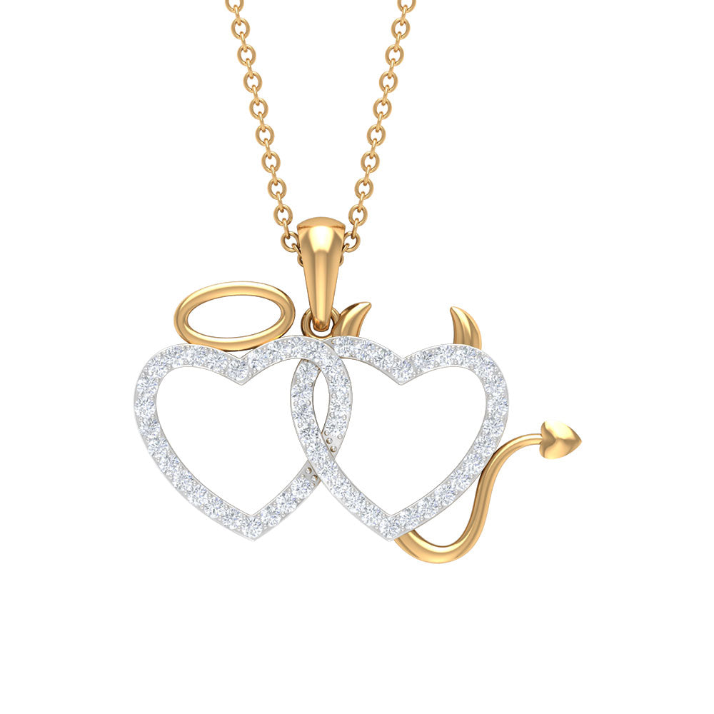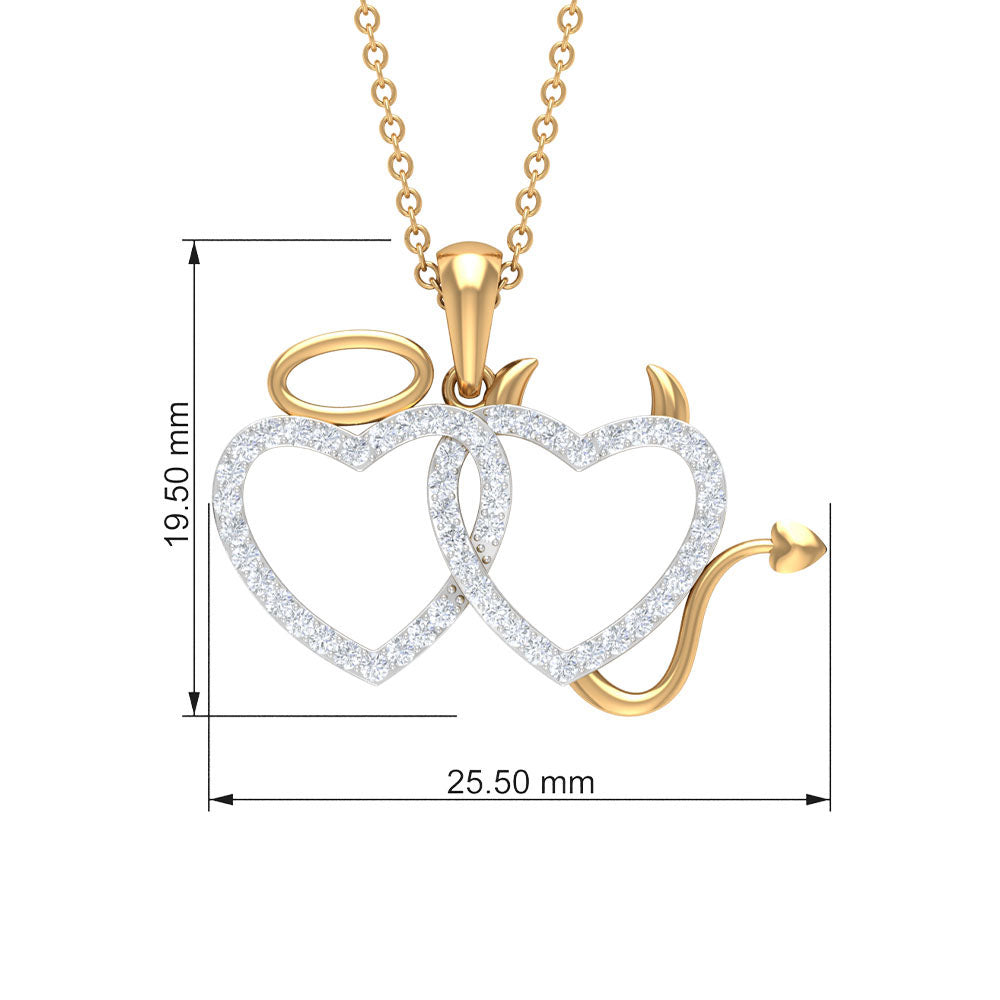 Certified Zircon Angle and Devil Twin Heart Necklace
