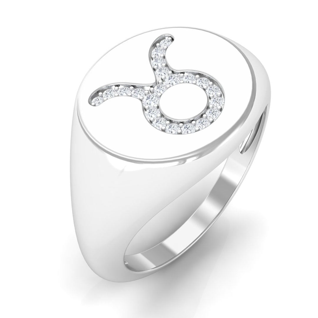 Strike a classy statement wearing this Zodiac Signet Ring fashioned in hallmarked metal. Having been embellished with Round Cut Zircon in Pave Setting, this Taurus Zodiac Ring is a meaningful star sign jewelry you could live in.