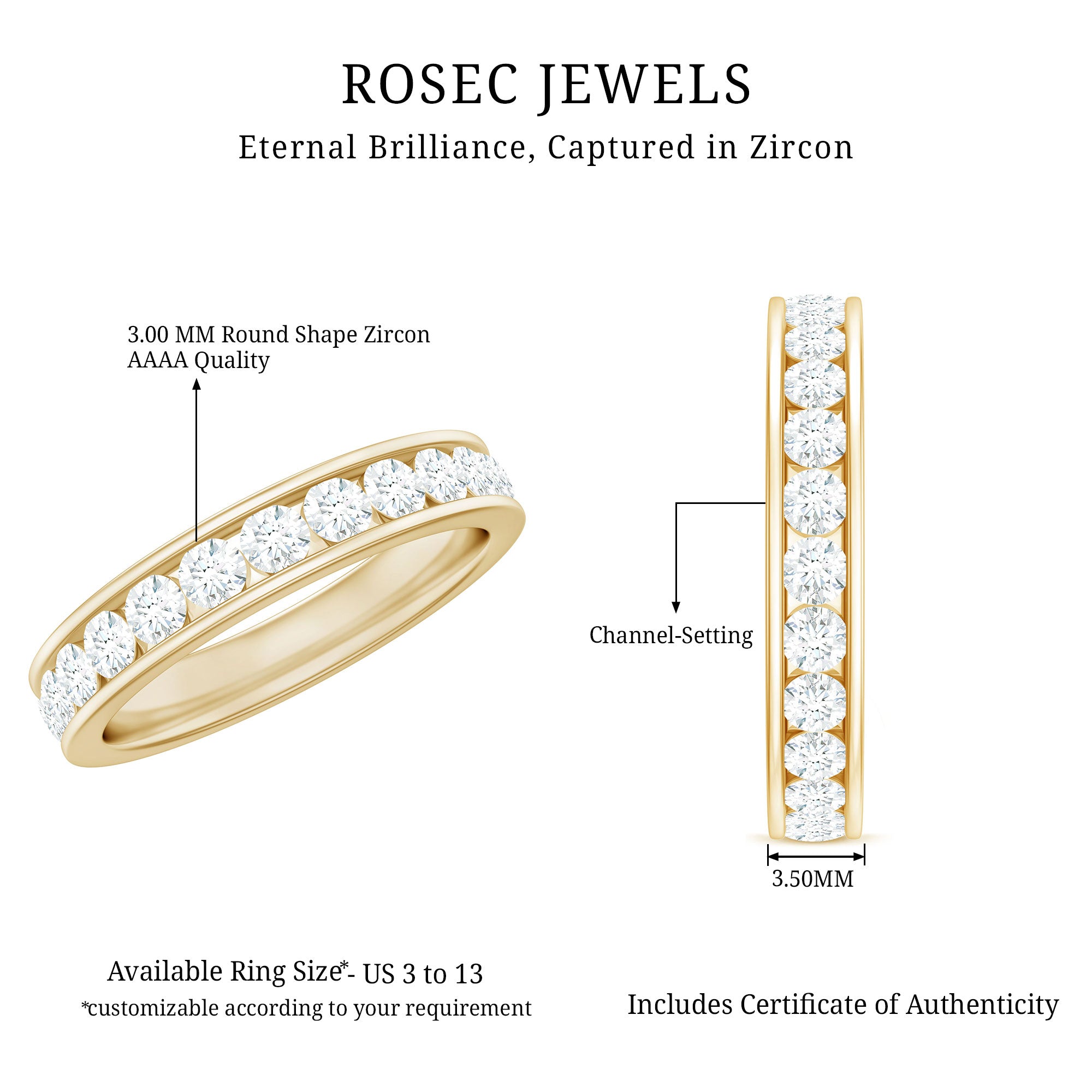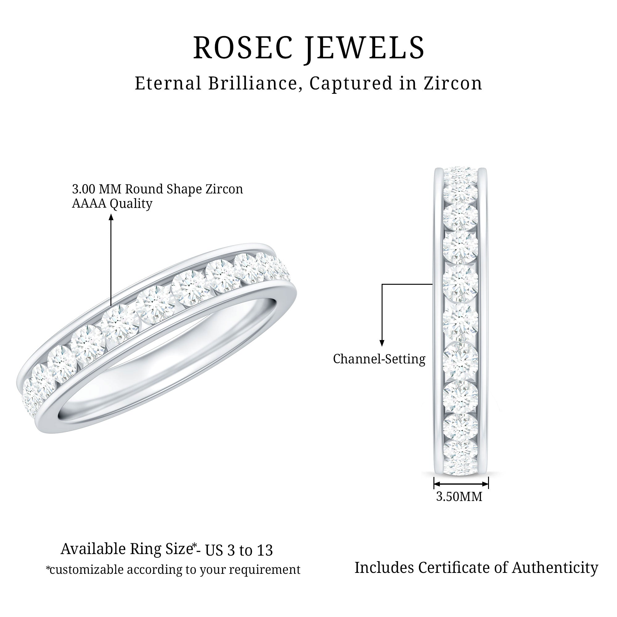 Channel Set Round Cubic Zirconia Full Eternity Band Ring