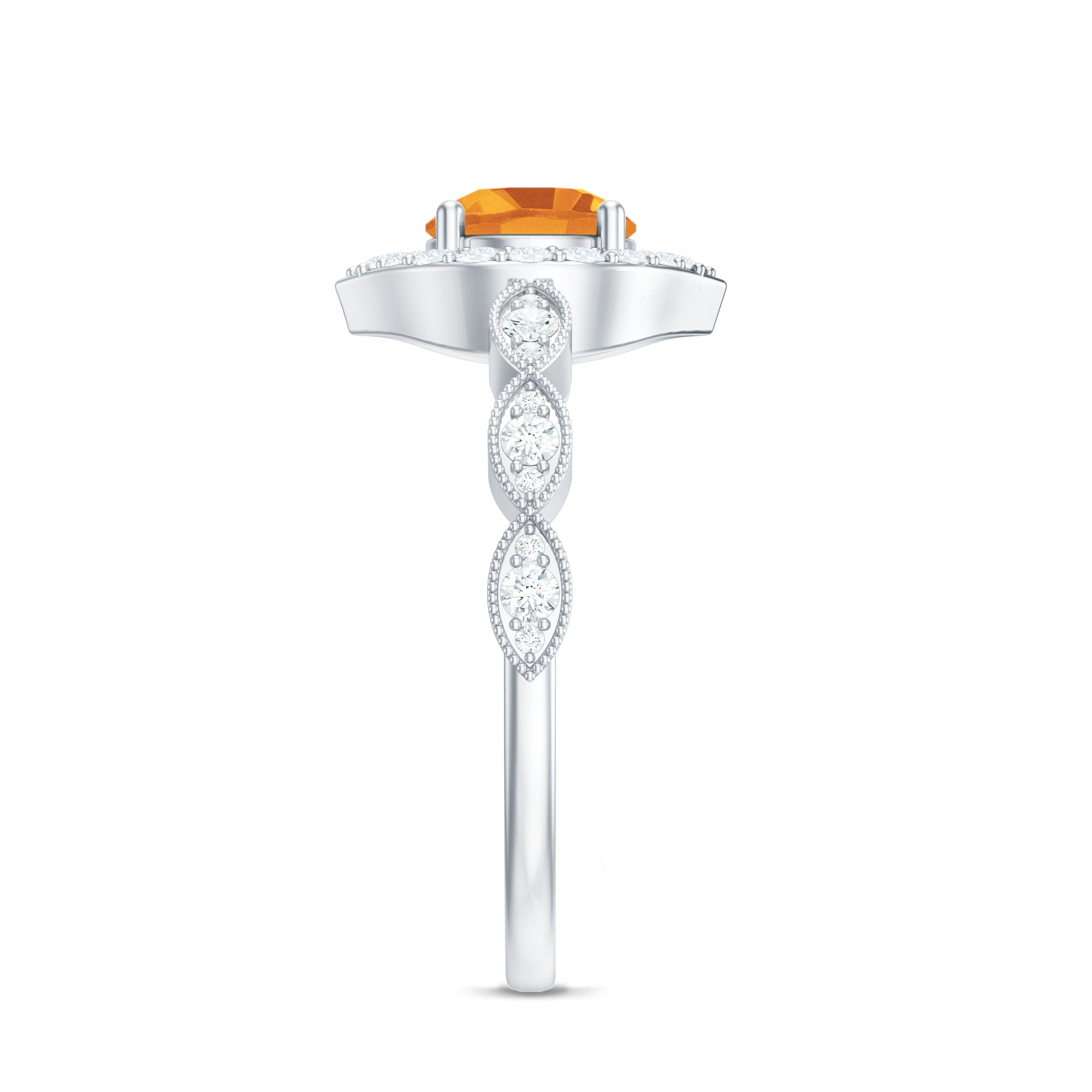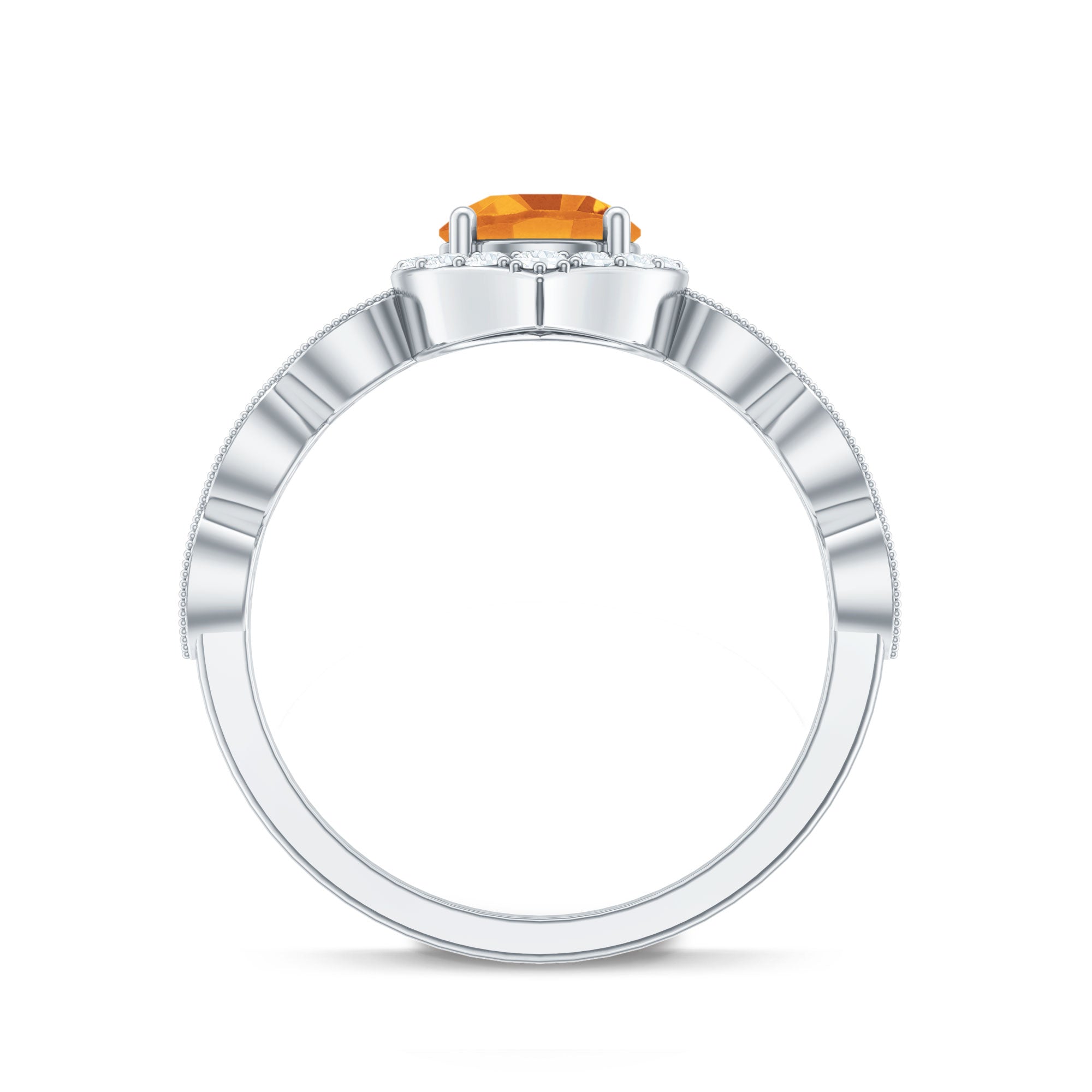 Citrine Vintage Style Engagement Ring with Diamond Accent