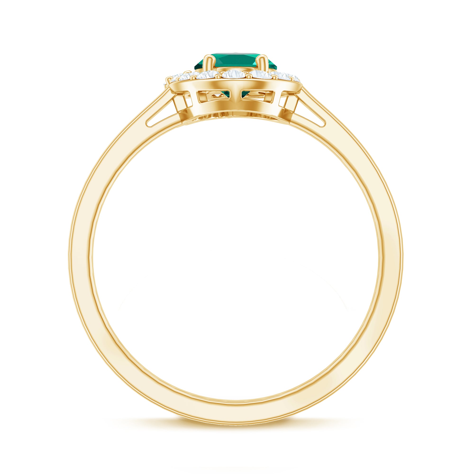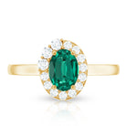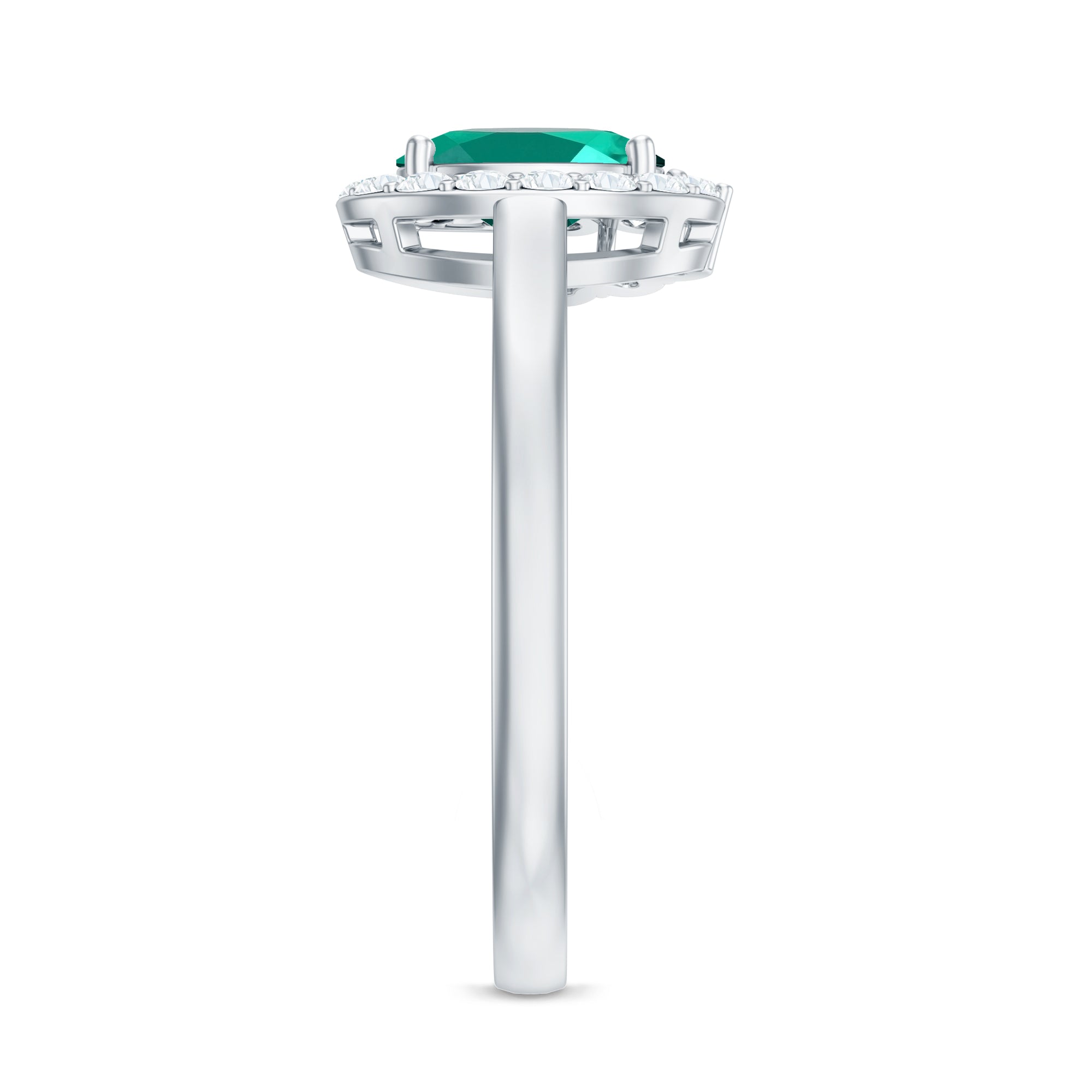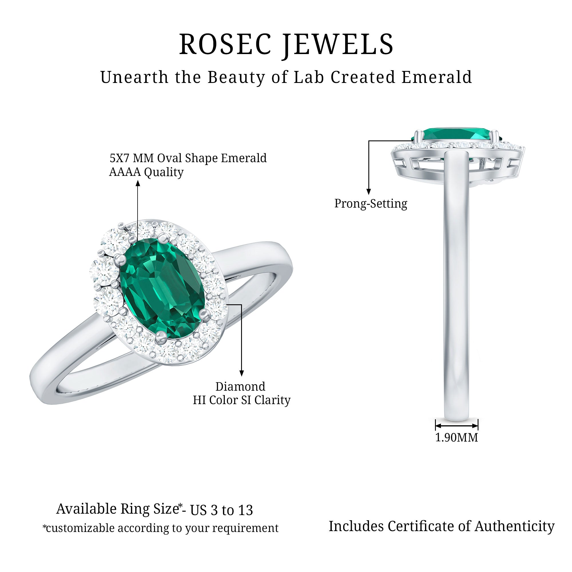 Classic 5X7 mm Oval Lab Grown Emerald Engagement Ring with Diamond Halo