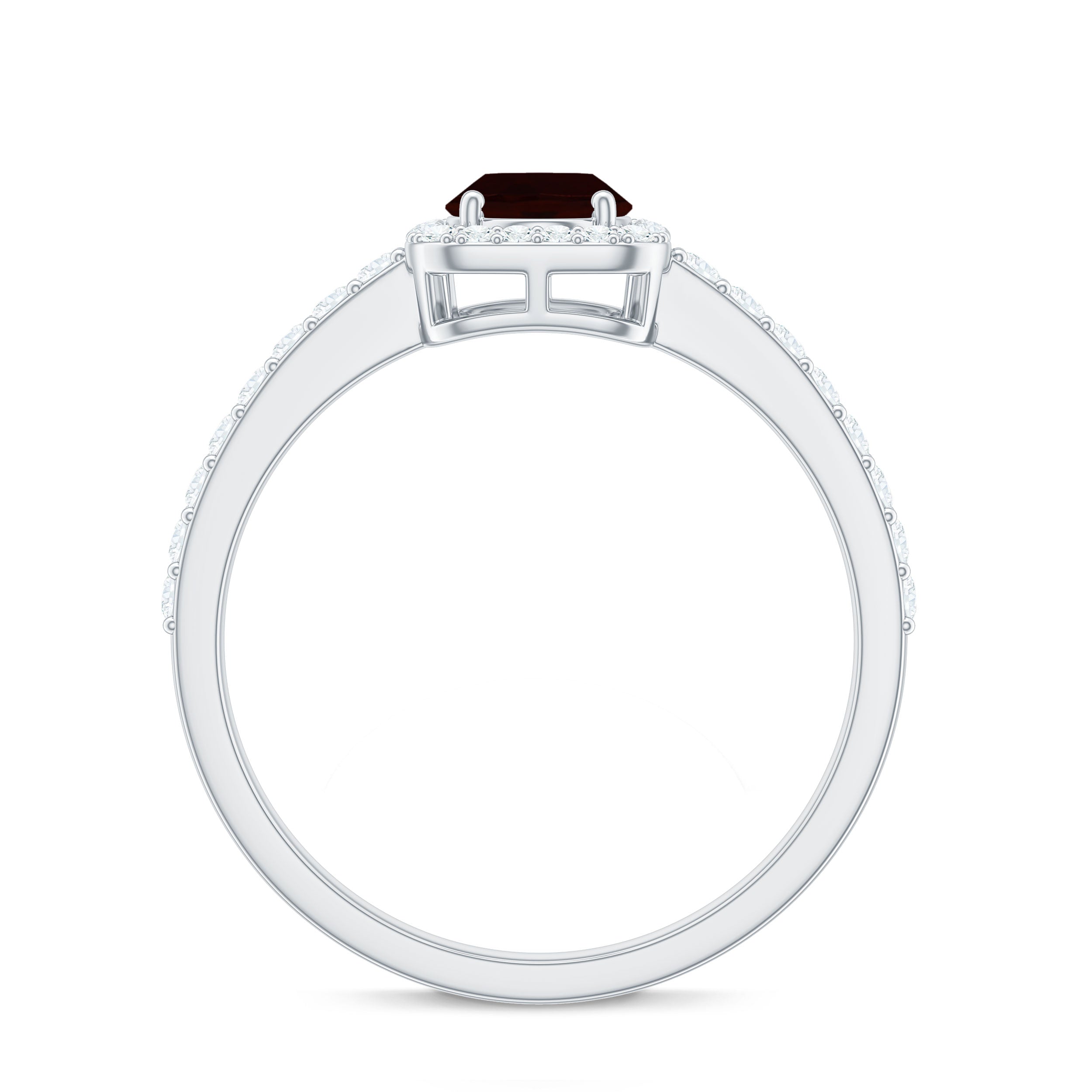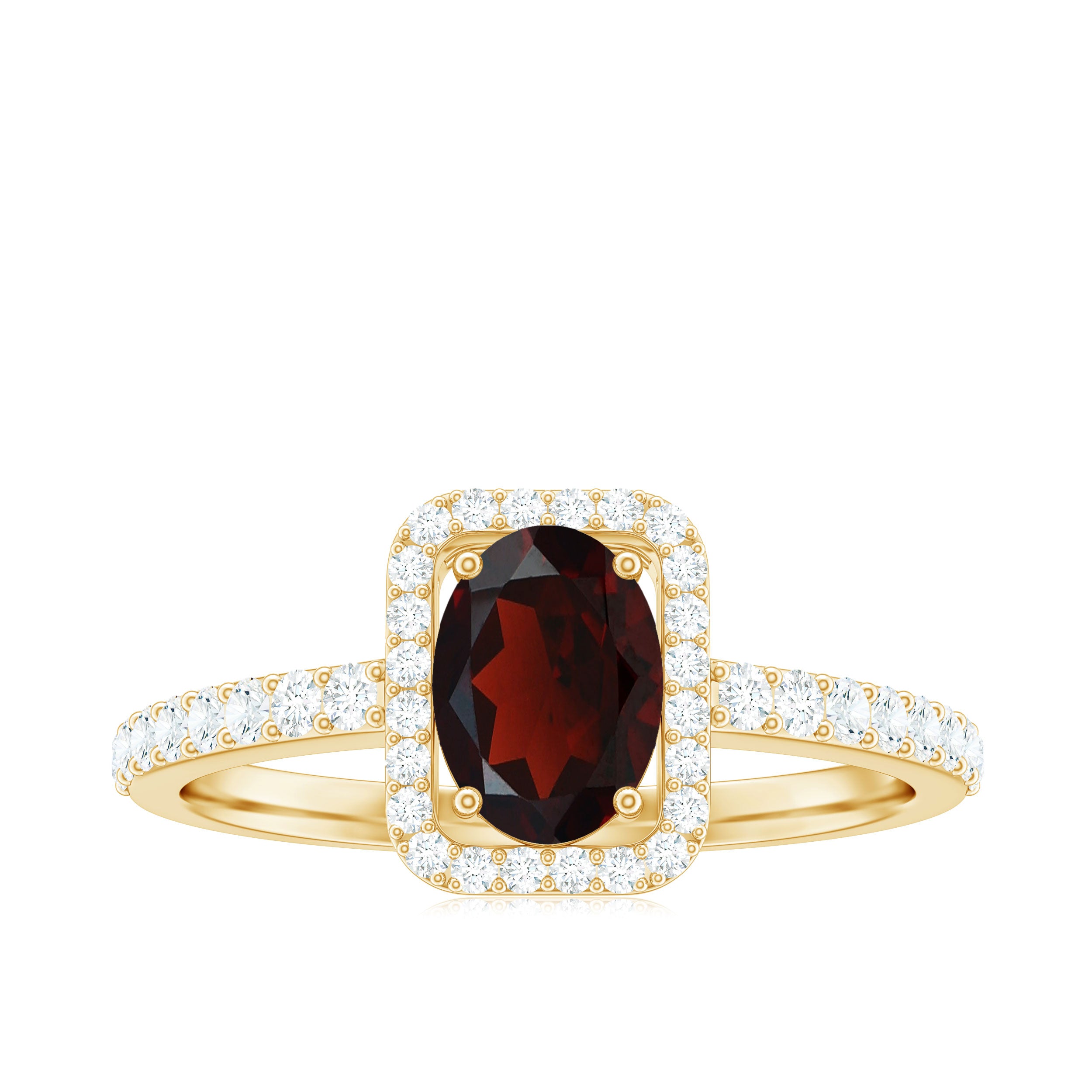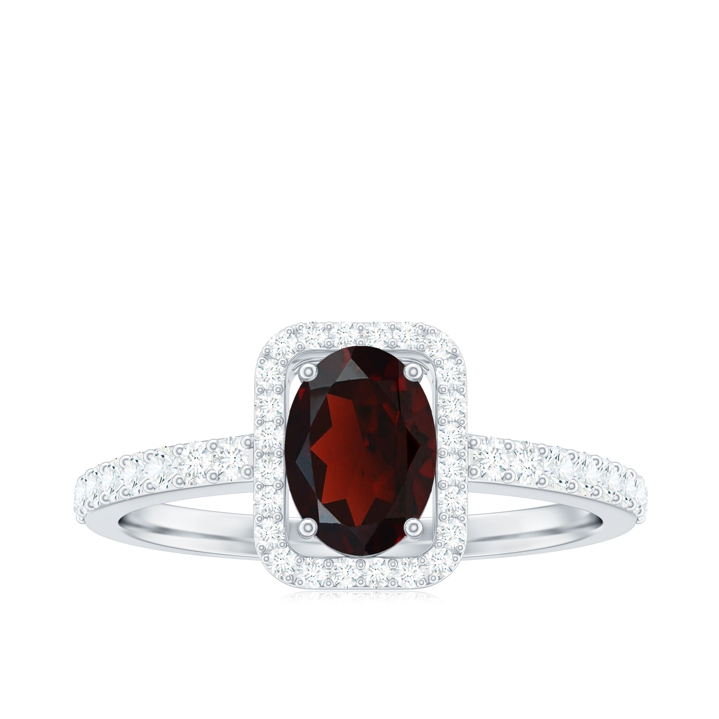 Classic 6X8mm Garnet Oval Engagement Ring with Diamond Halo