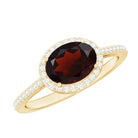 Classic 6X8mm Oval Garnet East West Engagement Ring with Diamond