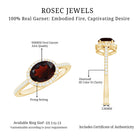 A token of your deepest devotion, this Classic Engagement Ring is a stunning expression of love and elegance. The 6X8 mm Oval Shape Garnet is set horizontally in a modern East West style, creating a fresh and sophisticated look that stands out while remaining timeless. Surrounding the center stone is a sparkling Halo of Diamond stones, complemented by delicate Side Stones that enhance the glow of AAA Quality Garnet and add an extra layer of brilliance. Available in various ring sizes, this Oval Engagement Ring is crafted to symbolize the unique bond you share, turning a moment of commitment into a cherished memory. The signature jewelry box adds a touch of luxury and makes presenting this ring an unforgettable experience. Comfortable yet eye-catching, it pairs beautifully with any style, from everyday elegance to special occasions, making this Garnet Engagement Ring a versatile piece you will treasure forever. With its Garnet, dazzling Diamond stones and meaningful design, this Halo Engagement Ring with Garnet captures the essence of eternal love, turning your proposal or gift into a heartfelt declaration that will be remembered for a lifetime.