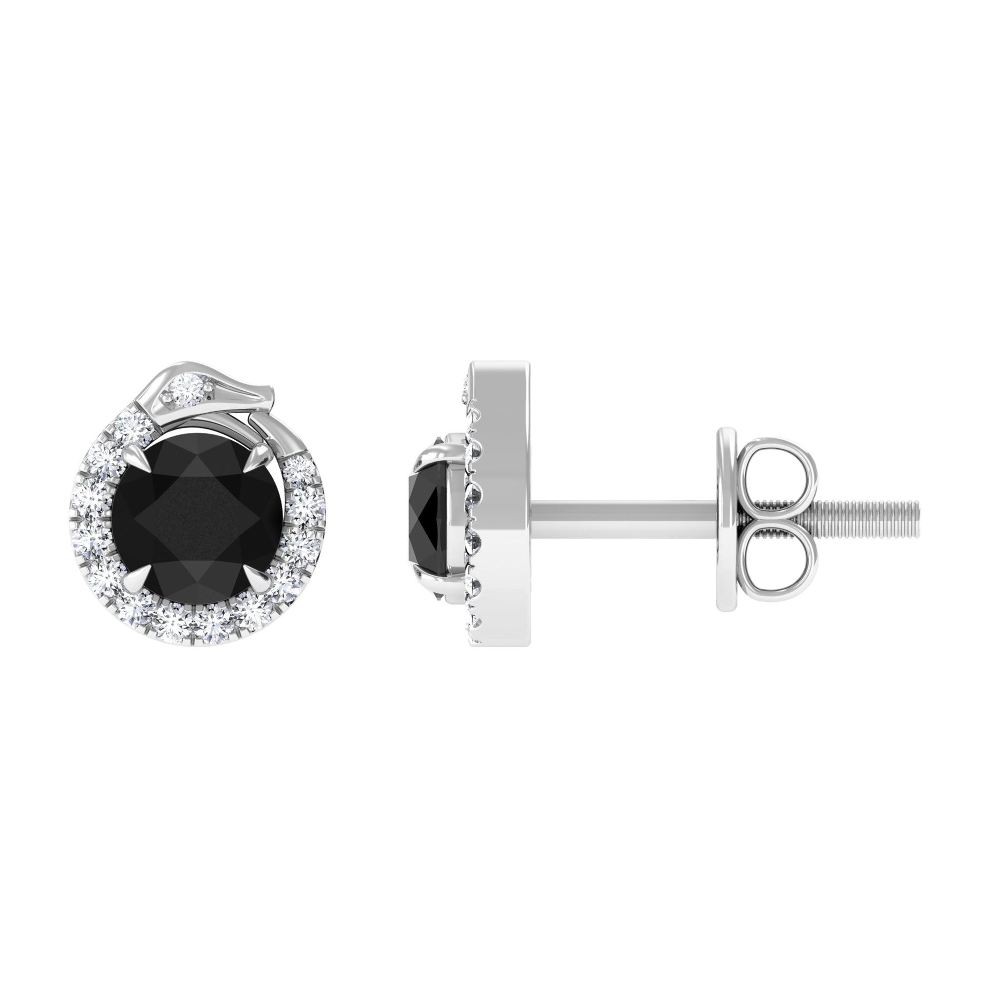 Elevate your style with our Snake Stud Earrings, where a captivating Round Black Diamond takes center stage set in claw setting, surrounded by glistening white diamonds along the snake tail. These black diamond earrings are a unique and enchanting choice, combining the allure of black and white diamonds with a striking snake motif, making them a conversation-worthy accessory for any occasion.