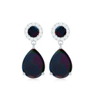 Elevate your outfit with a touch of grace by wearing these Teardrop Earrings, showcasing a pear-cut black opal drop and a halo of round Diamond surrounding the round black opal gemstones as the stud. Made from gold, these black opal earrings exude a playful yet sophisticated look, and their versatility makes them perfect for a variety of styles and occasions. With their timeless design, these bridal drop earrings are a must-have addition to any jewelry collection.