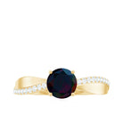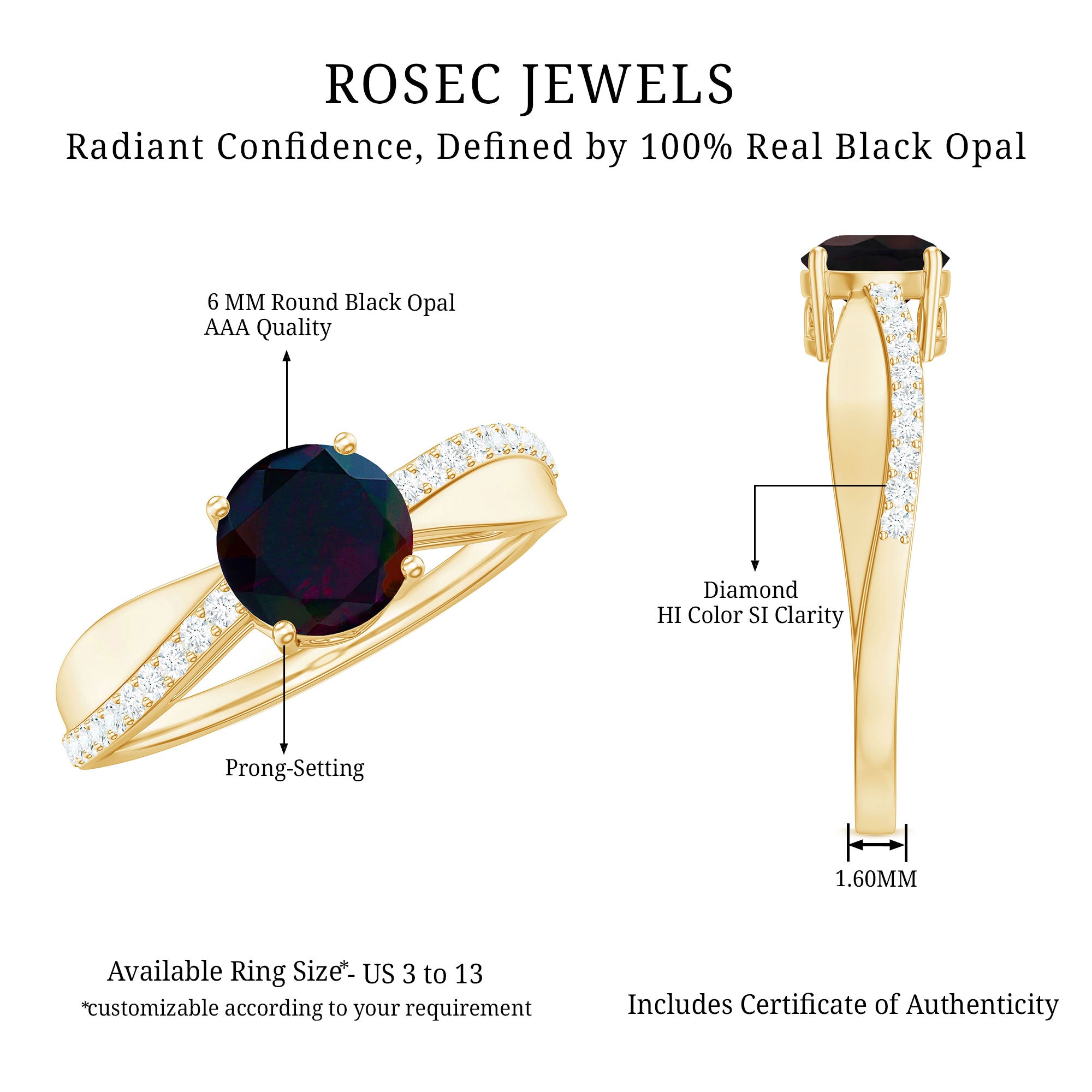 This exquisite black opal engagement ring with diamonds is a symbol of your eternal love and commitment. This solitaire engagement ring has a round-shaped black opal gemstone in the center with sparkling diamond side stones in a prong setting. If you are planning to make your engagement special and unique then this ring is just the perfect option for you. This October birthstone ring is more than just a piece of jewelry; its a promise of a lifetime of love and adventure.