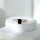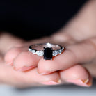 Classic Created Black Diamond Engagement Ring with Moissanite Side Stones