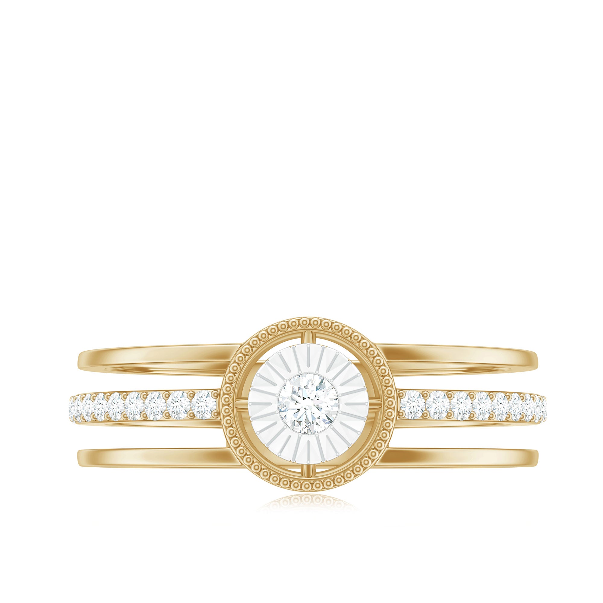 Celebrate your special day with the elegant Miracle Plate Diamond Engagement Ring. Adorned with a stunning Round Cut Diamond and featuring a classic center plate design, this ring is a must-have for any woman.