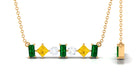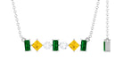 Elevate the significance of your special occasion with this stunning Bar Necklace embellished with Baguette Cut Emerald and Princess Cut Yellow Sapphire stones set in a Prong Setting, and decorated with Moissanite Accent. The Classic Necklace is expertly crafted from Solid Gold, adding to its exquisite beauty and charm.