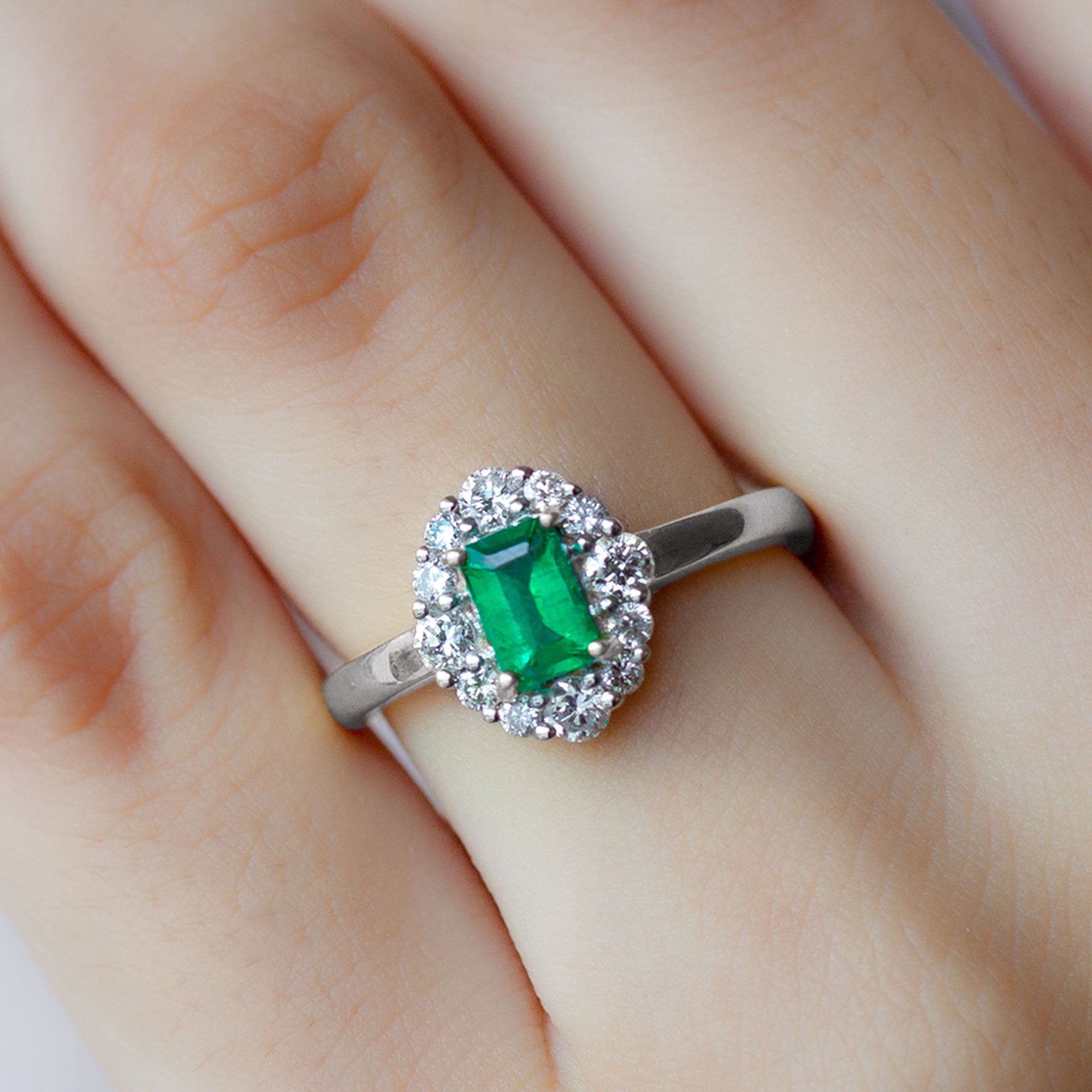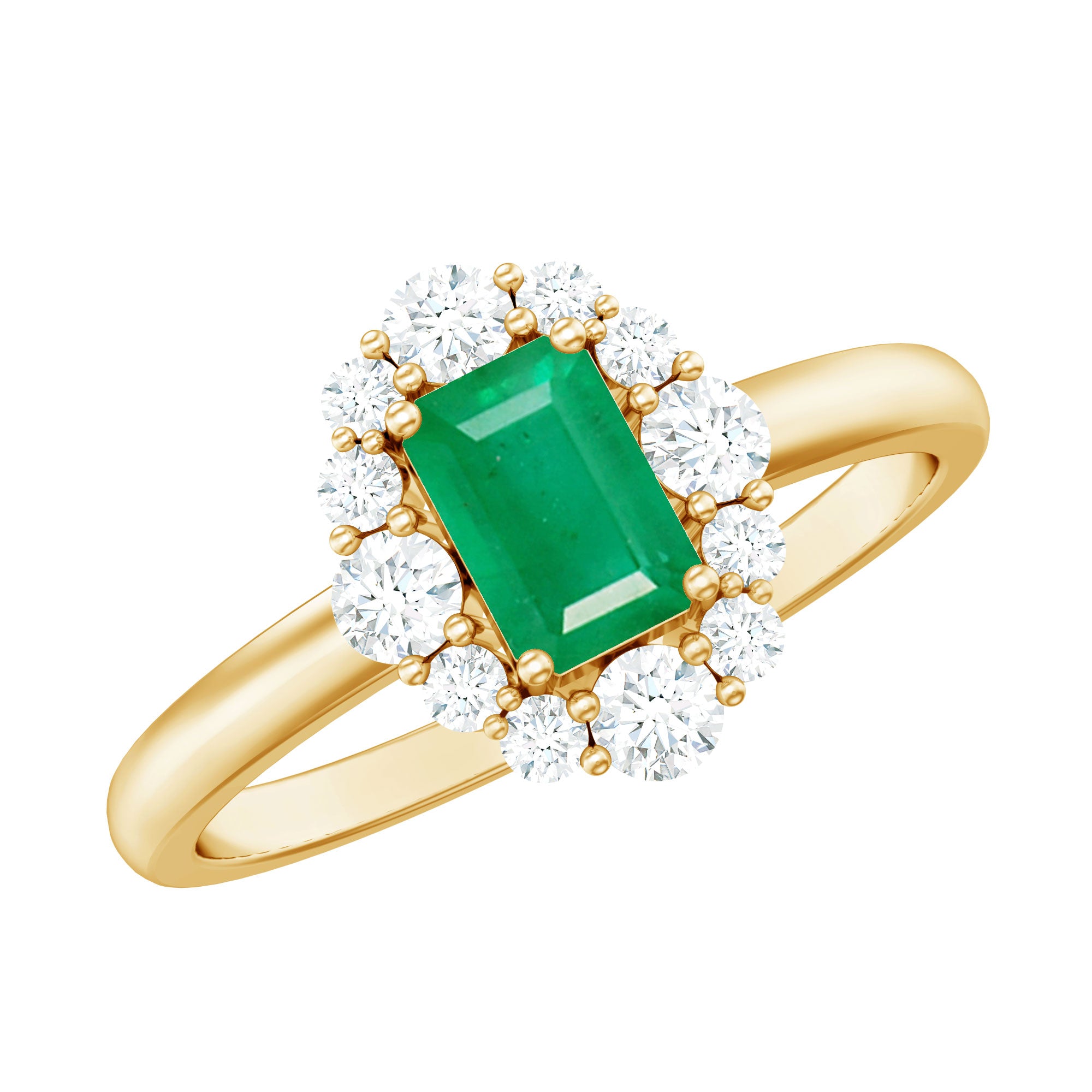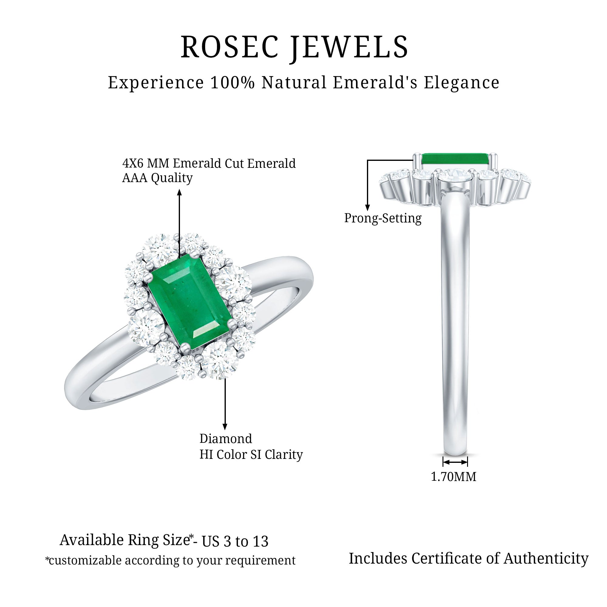 Classic Emerald Cut Emerald Engagement Ring with Diamond Halo