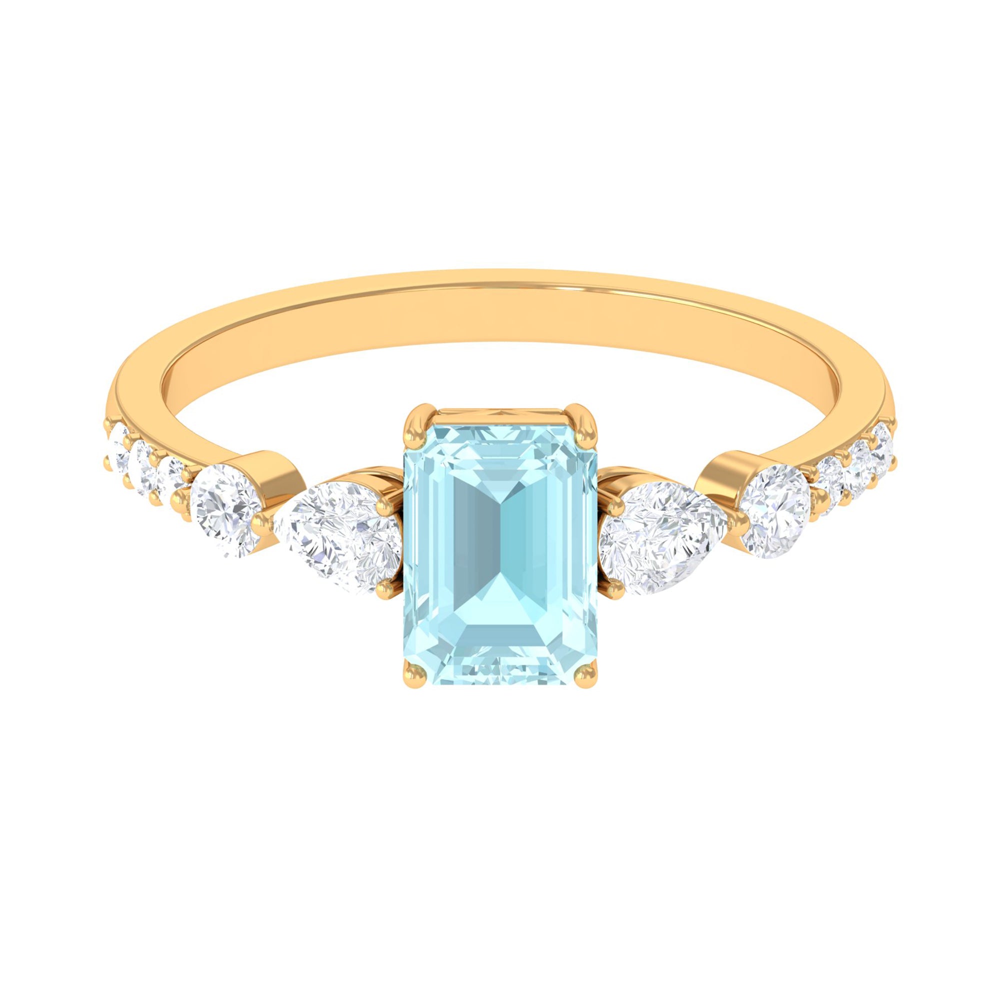 Grab our Solitaire Engagement Ring as it has a remarkable visual appeal with its excellent design. Embellished with Emerald Cut Sky Blue Topaz secured in Prong Setting while Pear and Round Shape Moissanite studded on the shank. The Sky Blue Topaz Ring represents timeless beauty and simplicity that will make her heart flutter. Present this Solitaire Ring to your beloved and wait for her priceless reaction.