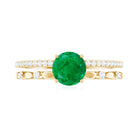 Where sophistication meets sentiment, this Double Band Engagement Ring becomes the ultimate symbol of eternal love. At its center lies a mesmerizing 5 mm Round Shape Emerald set in Prong Setting. Set at the center, its deep green glow represents passion, balance and the kind of love that grows stronger with time. The dual bands tell a story of two souls intertwined, one a sleek Diamond studded band that sparkles with every heartbeat, the other is a designer band that adds depth, artistry and individuality. Together, they create a stunning harmony, classic yet modern. Every facet, every shimmer of this Classic Engagement Ring with Emerald speaks of devotion crafted to perfection. Presented in an elegant jewelry box and available in various sizes, this Emerald Diamond Engagement Ring is designed to fit your love story flawlessly. Whether it is the beginning of forever or a promise renewed, the beauty of this Emerald Ring for Women captures the essence of two hearts beating as one. A timeless masterpiece, destined to be cherished as deeply as the love it was chosen to honor.