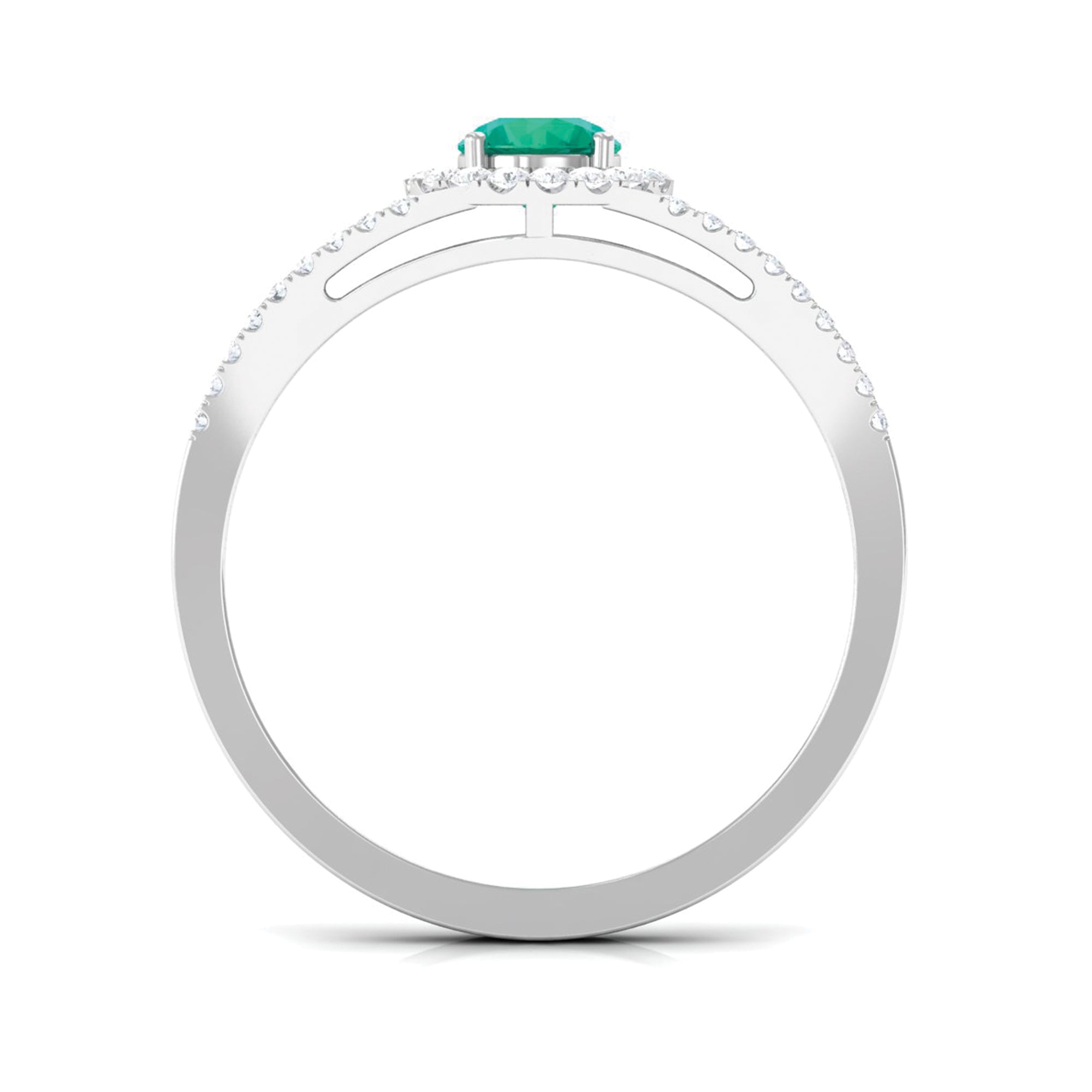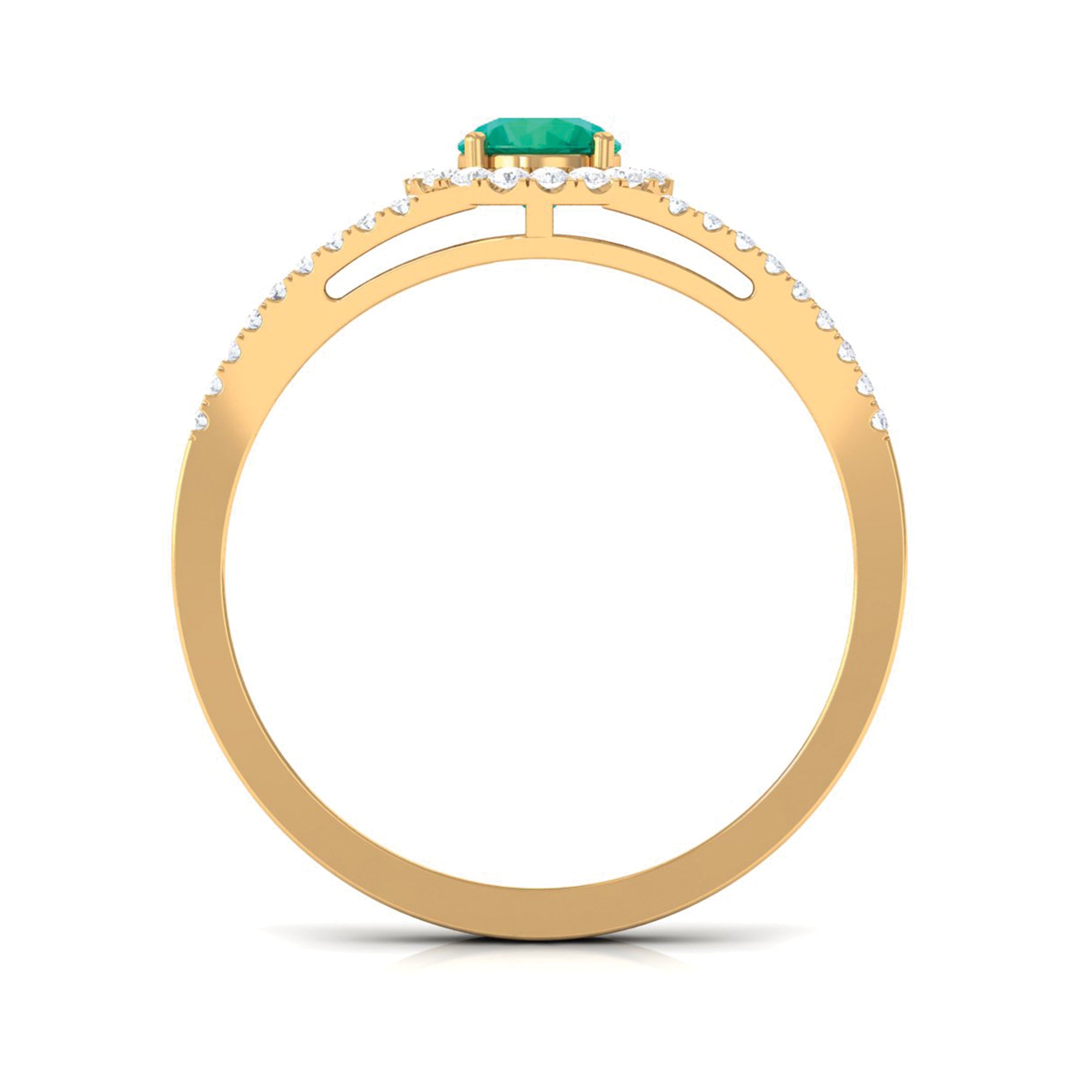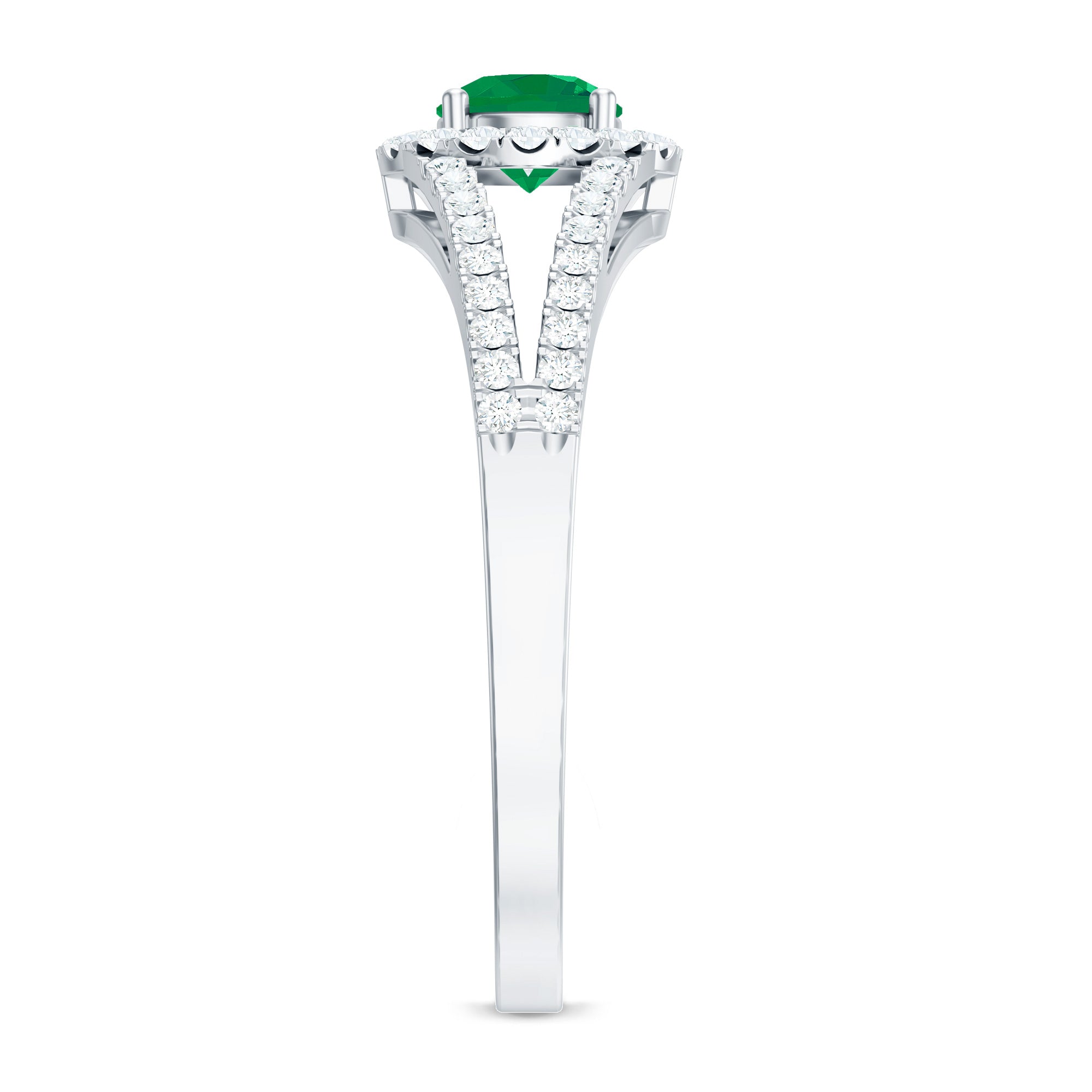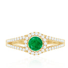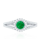 Classic Emerald Split Shank Engagement Ring with Diamond Halo