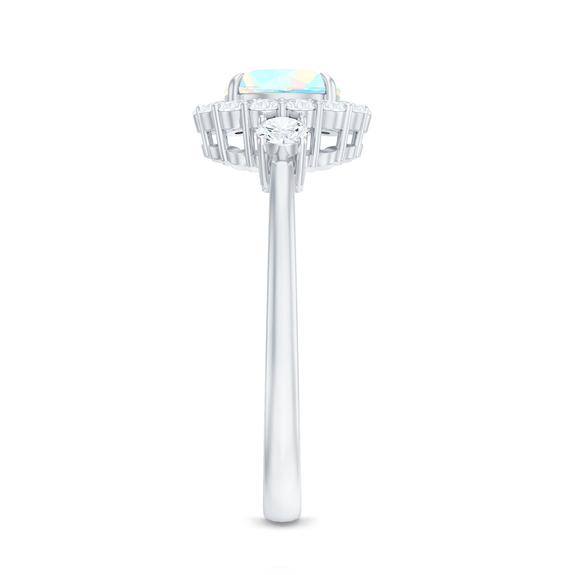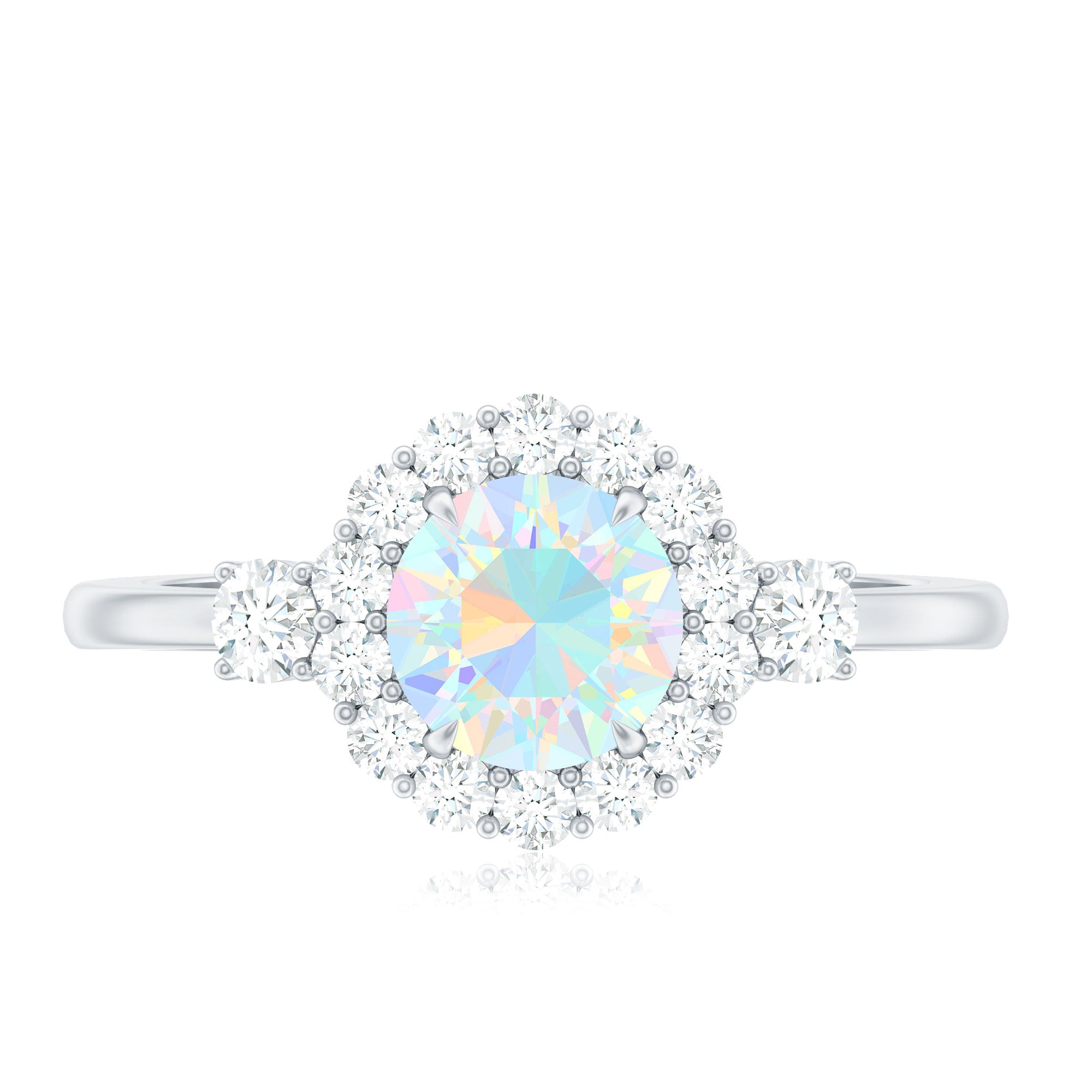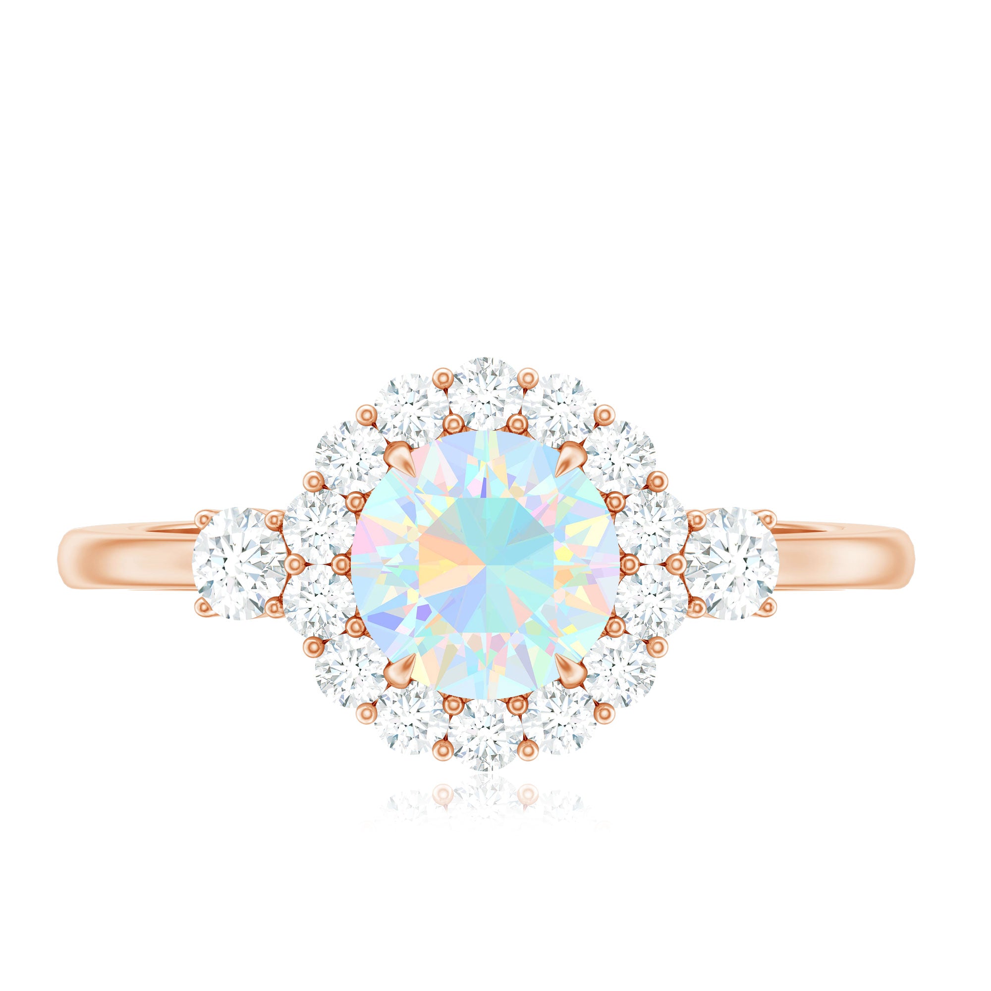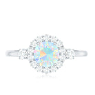 Classic Ethiopian Rainbow Opal Engagement Ring with Diamond Halo