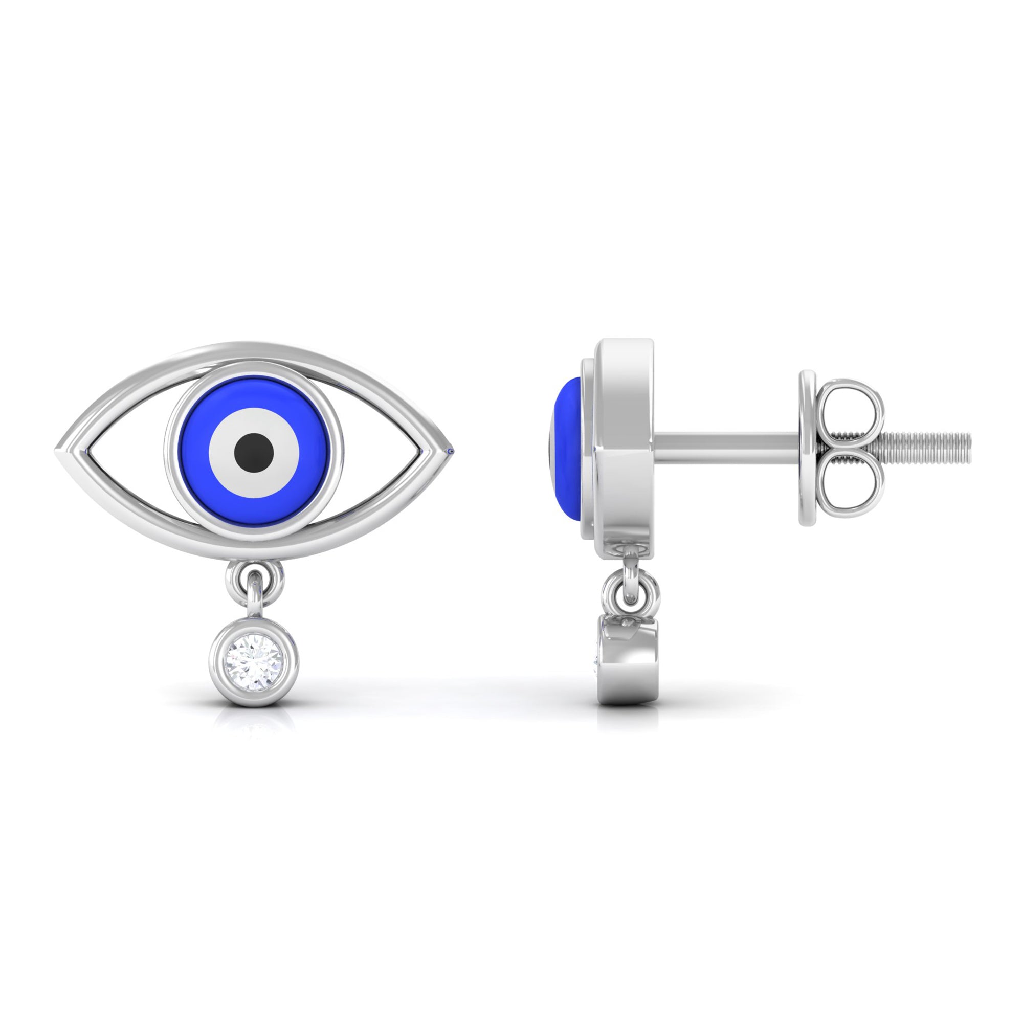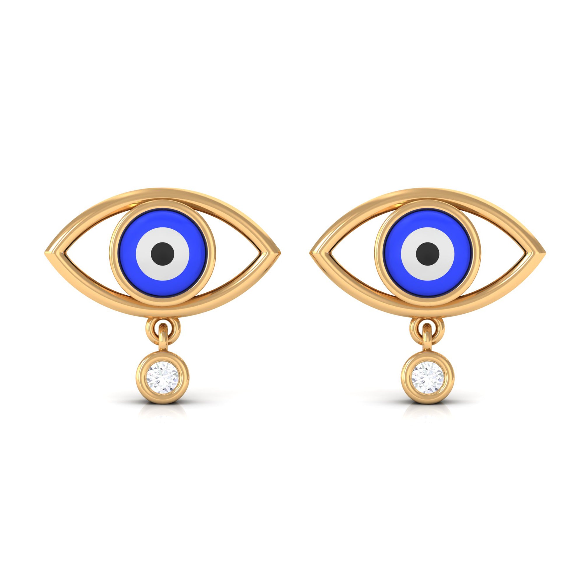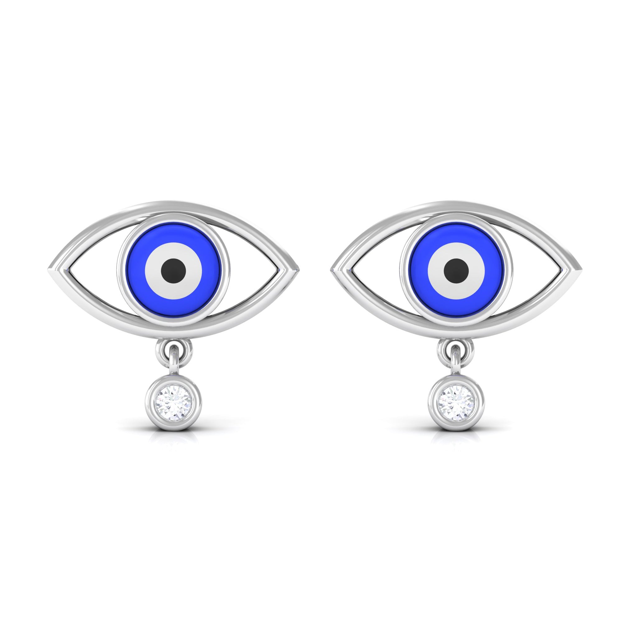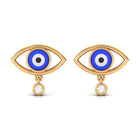 Classic Evil Eye Stud Earrings with Moissanite Drop in Bezel Setting