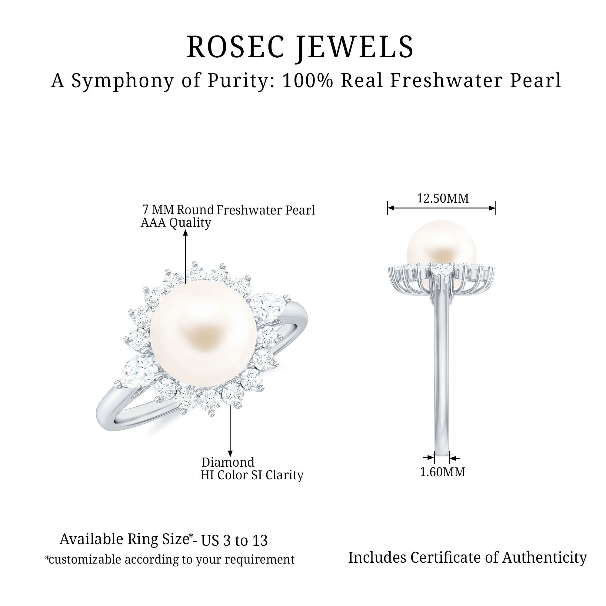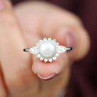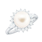Classic Freshwater Pearl Halo Engagement Ring with Diamond
