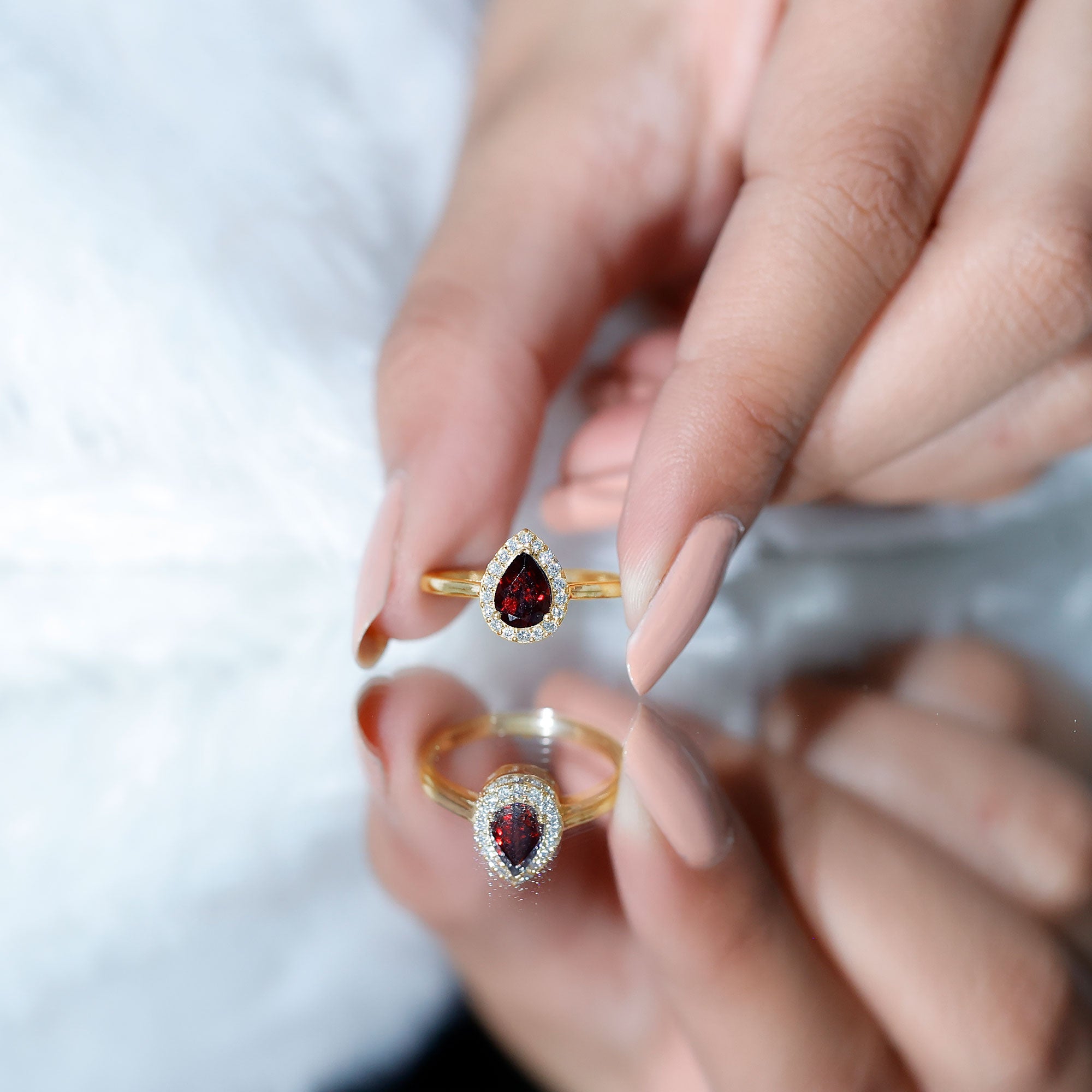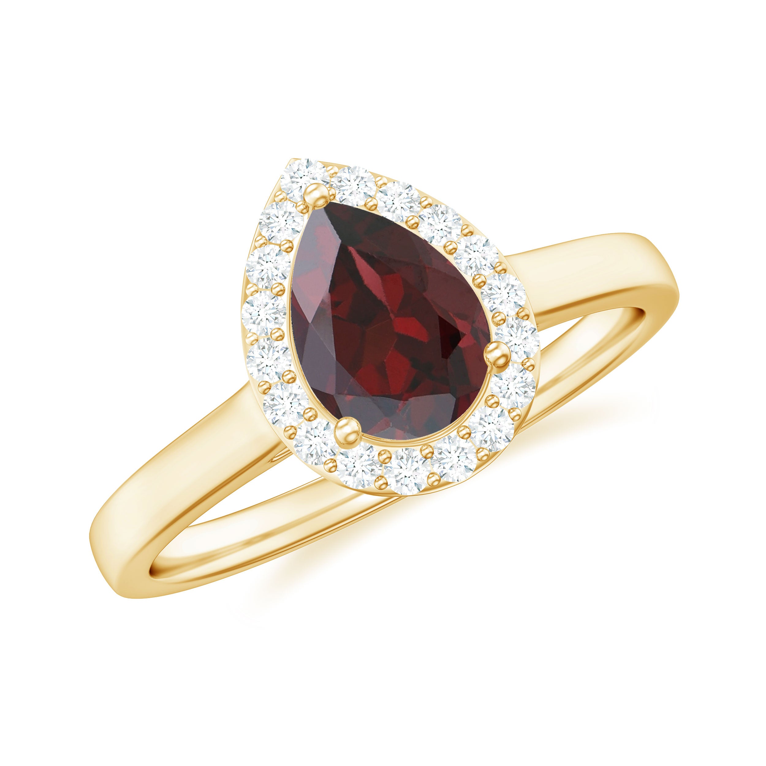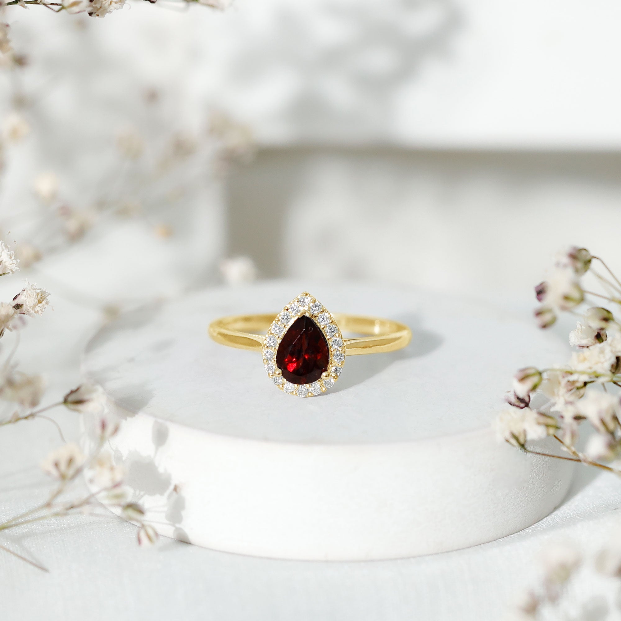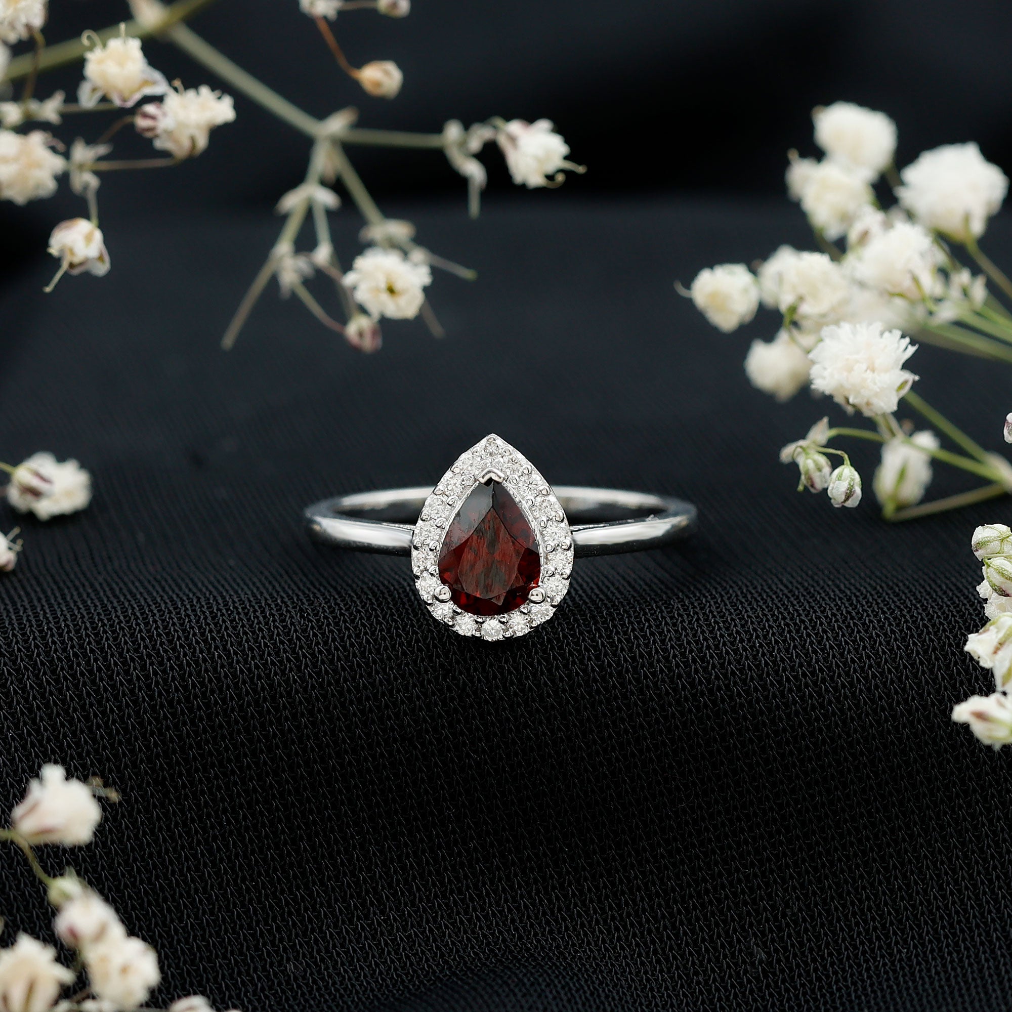 Classic Garnet Teardrop Engagement Ring with Diamond Halo