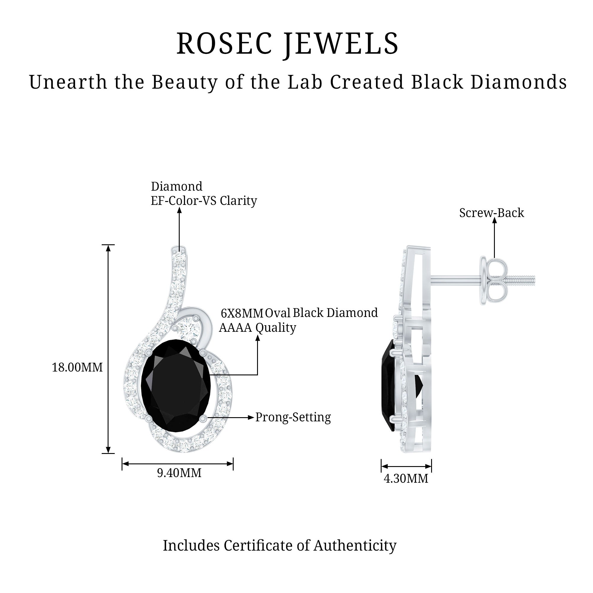Monochrome elegance meets modern brilliance in our Classic lab grown Black Diamond Earrings. Meticulously crafted, each earring showcases a 6x8 mm oval shaped Black Diamond held in a secure prong setting and surrounded by round shaped Diamond gemstones, exuding timeless sophistication. Impeccably designed for versatility, these Black and White Diamond Earrings (Unnatural) effortlessly elevate any ensemble. Whether as a gift for bride, an anniversary gift for her, a birthday gift for mom, or a heartfelt gift for women, these Screw back Earrings are the ultimate expression of your love and care, crafted to make every moment memorable. A testament to superior craftsmanship, these Stud Earrings are brought to you by Rosec Jewels committed to excellence.