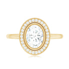 Experience the epitome of timeless beauty with this Classic Halo Engagement Ring. A 6X8 MM Oval Shape Lab Grown Diamond set in Bezel Setting takes the center stage and is embraced by a sparkling halo, enhancing its brilliance. Choose this ring to make your proposal truly special.