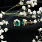 Classic Lab Grown Emerald Halo Stud Earrings with Certificate