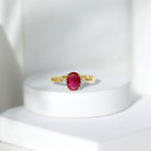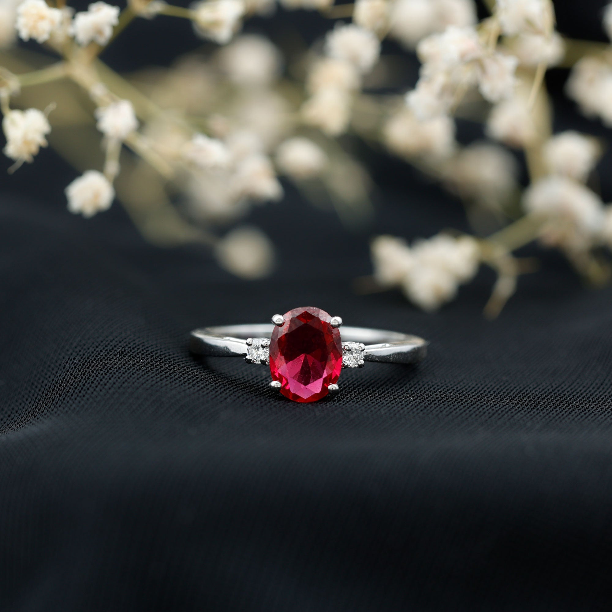 Classic Lab Grown Ruby Oval Engagement Ring With Diamond