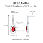 Command attention wherever you step with these striking Created Teardrop Earrings. What sets this Ruby Earrings apart is its bold artistic design, showcasing a centrally placed 6x8mm Pear Shaped Lab Created Ruby within two intertwined teardrop metal frames. One frame sparkles with accent of the Lab Created Diamonds, while the other completes the piece with its radiant metallic grace. The captivating combination of Aaaa Quality Ruby and Ef-Vs Quality Diamond with metal makes this Ruby Diamond Earrings eye-catching, ensuring heads will turn wherever you go. Rosec Jewels, specializes in crafting show-stopping pieces with Certified Lab Grown Gemstones. Order to check!