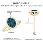 Classic London Blue Topaz Oval Engagement Ring with Diamond Halo