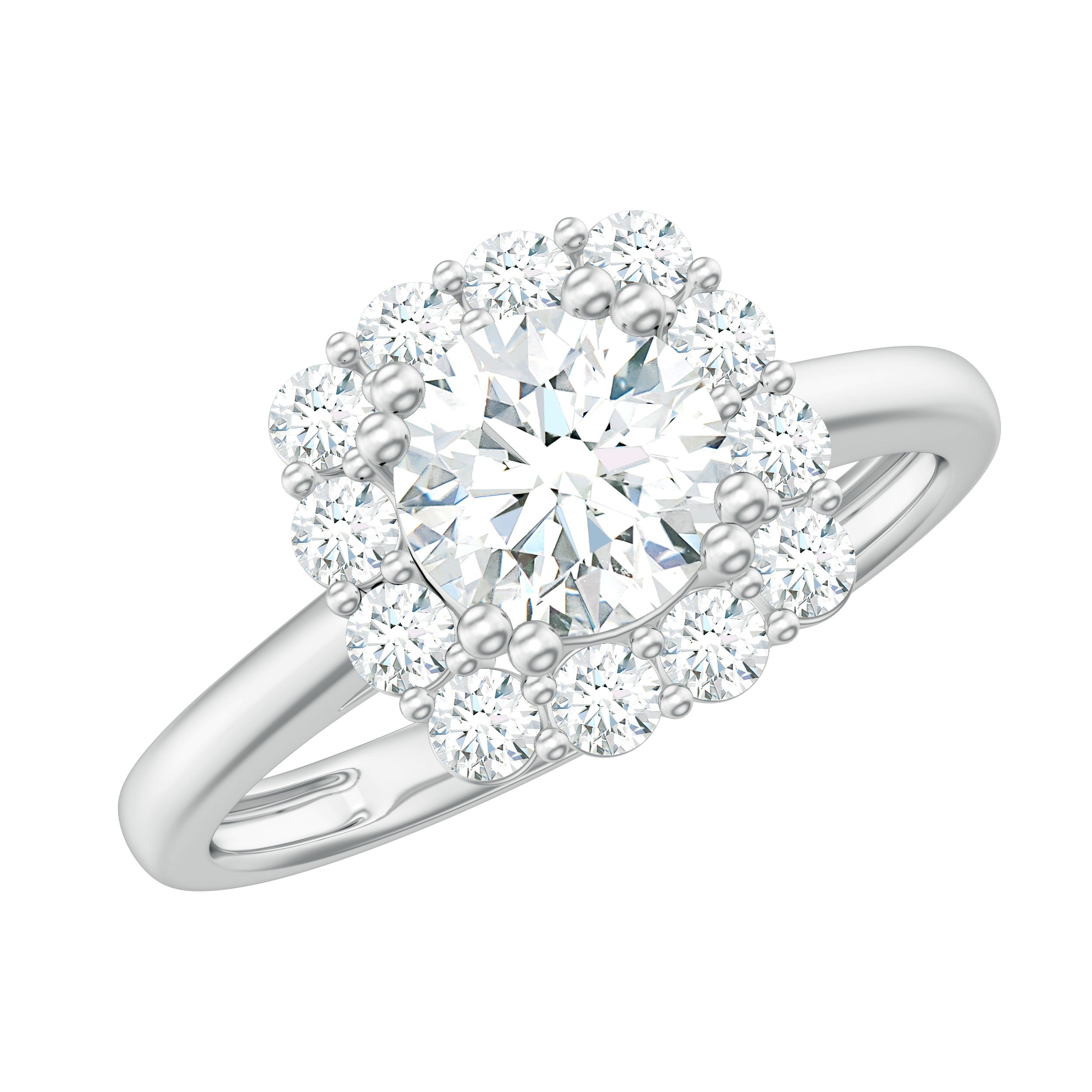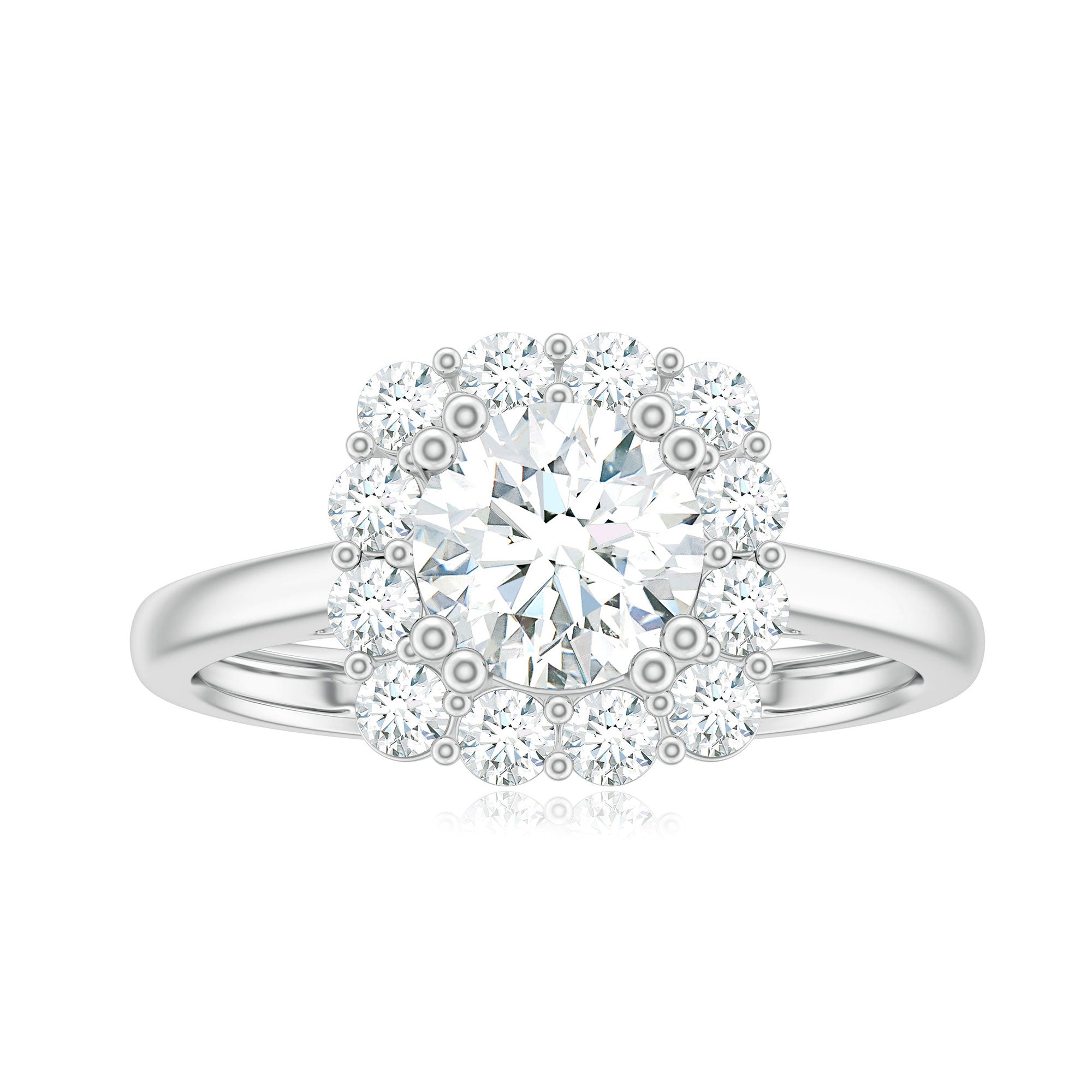 Classic Moissanite Halo Engagement Ring in Double Prong Setting