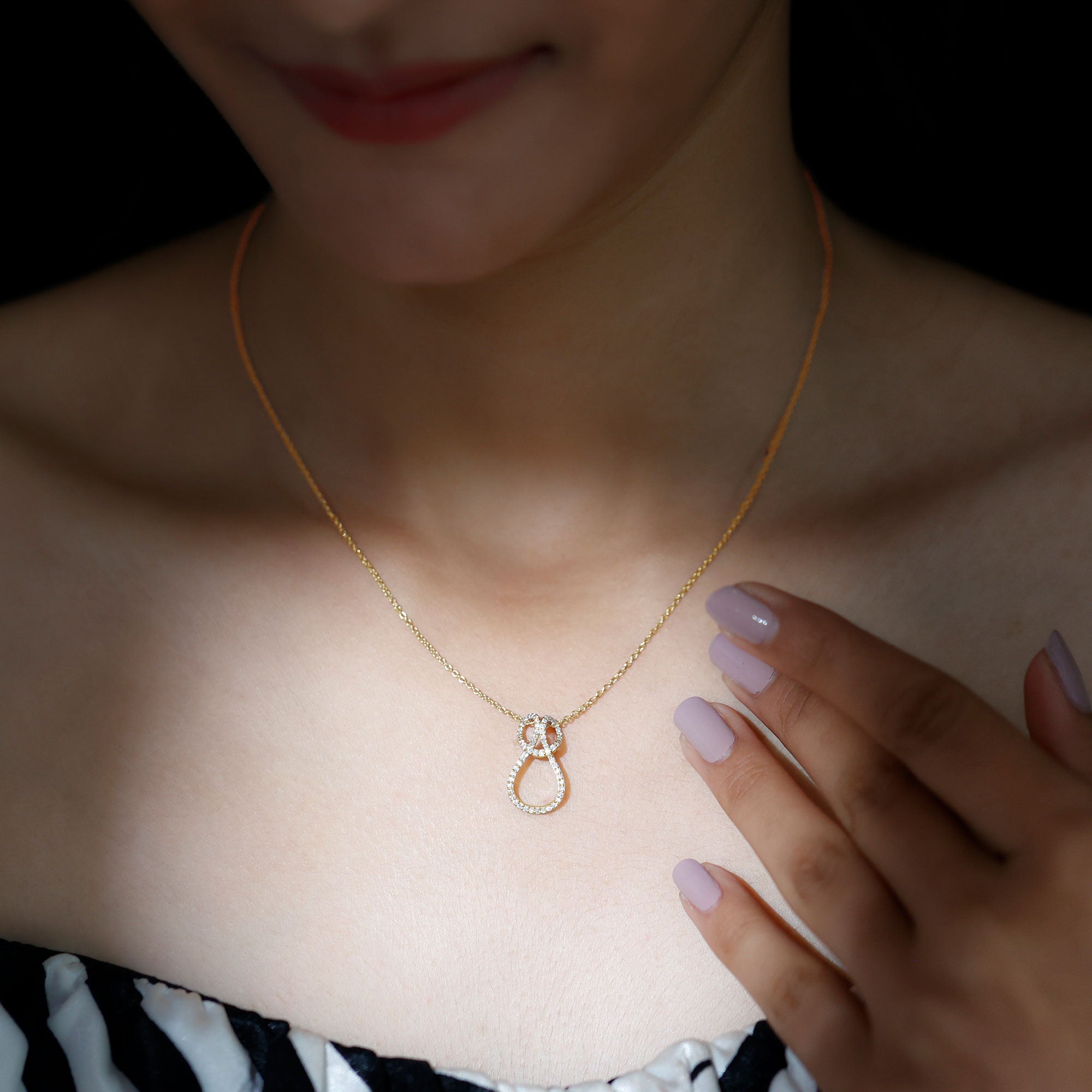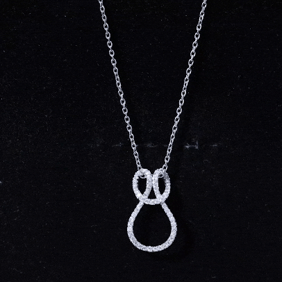 Experience a delightful twist on the traditional infinity symbol with this exquisite pendant necklace. The pendant showcases a beautifully twisted infinity design adorned with pave-set round moissanite, striking the perfect balance between timeless elegance and dazzling sparkle.
