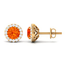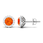 Classic Orange Sapphire Stud Earrings with Diamond Halo