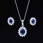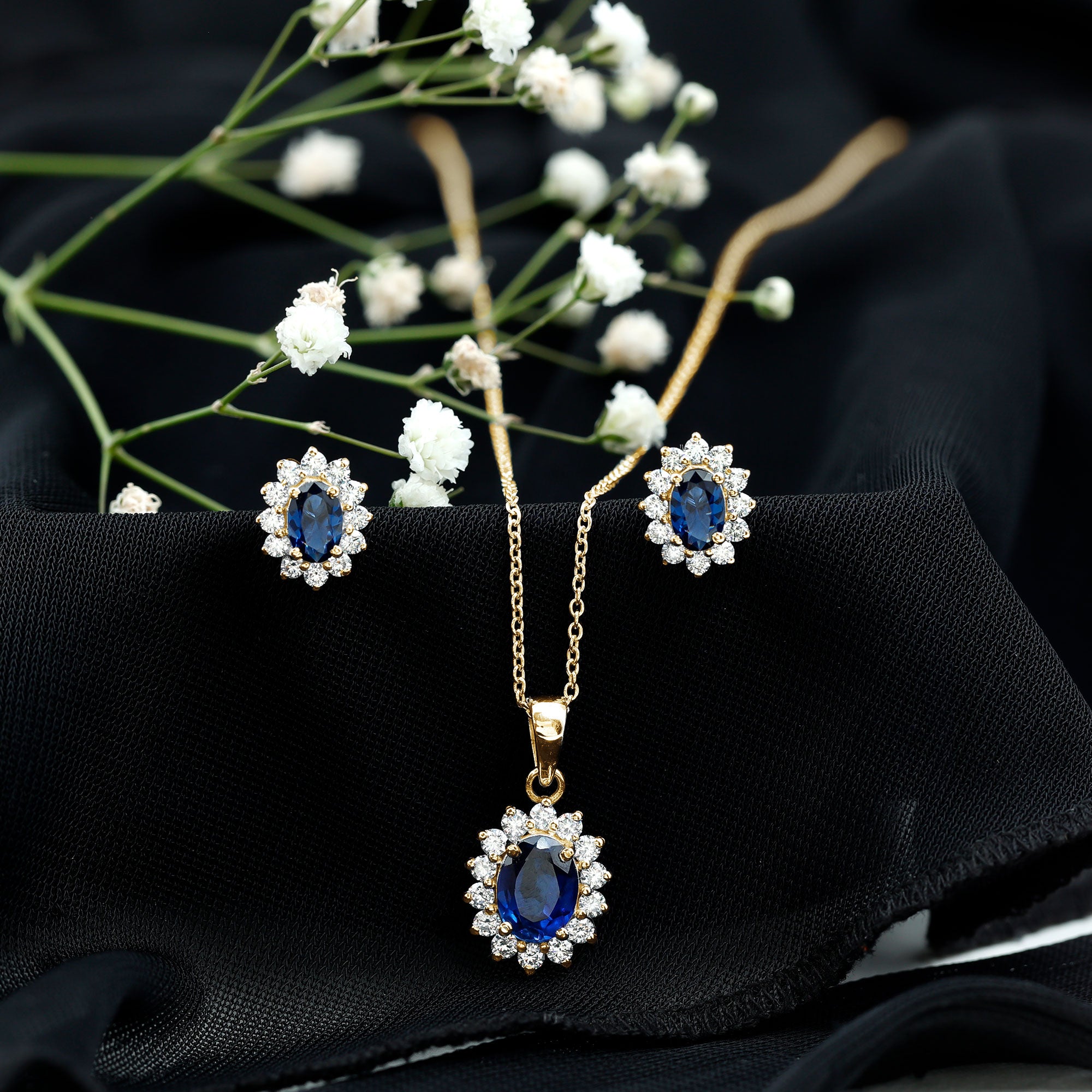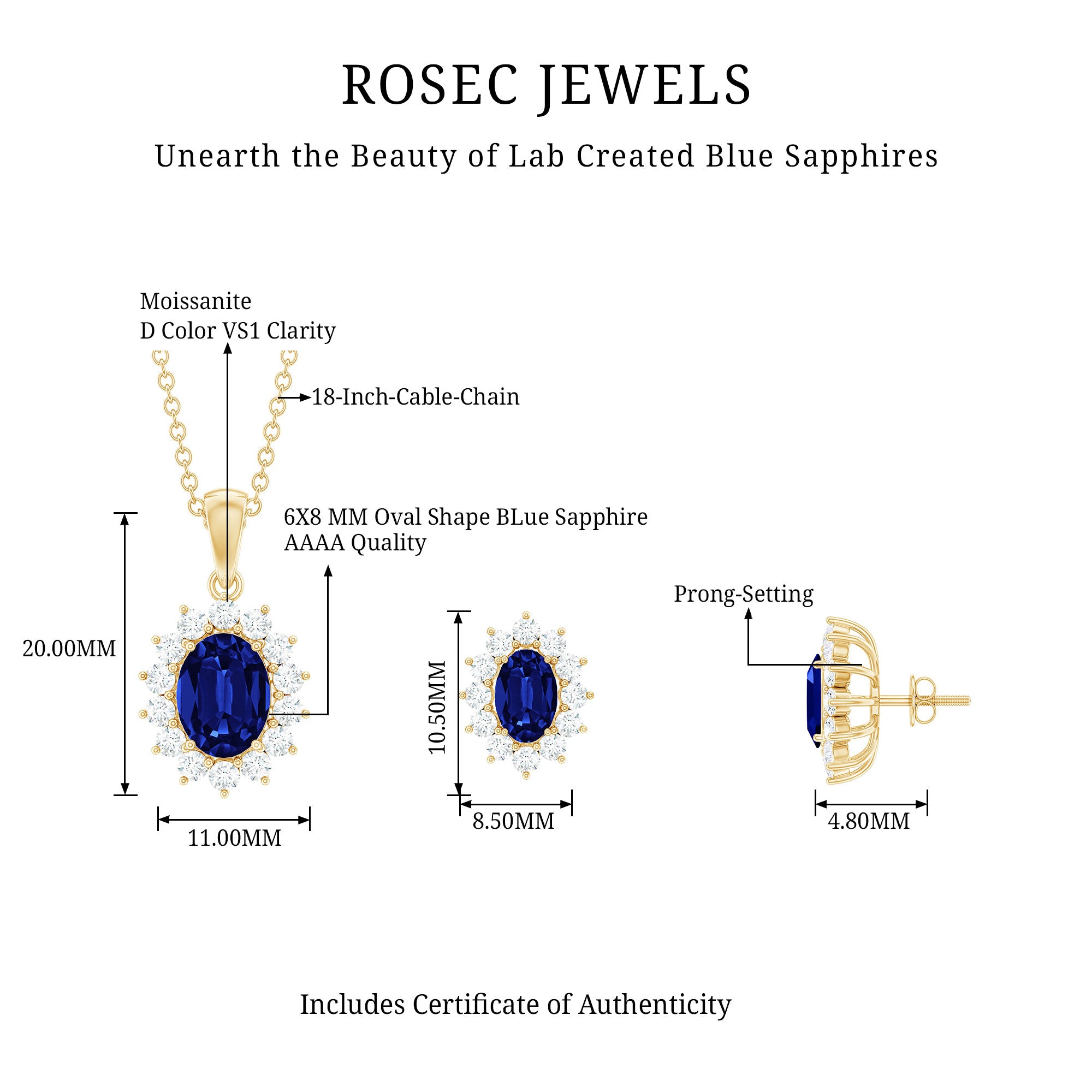Classic Oval Cut Created Blue Sapphire and Moissanite Halo Jewelry Set
