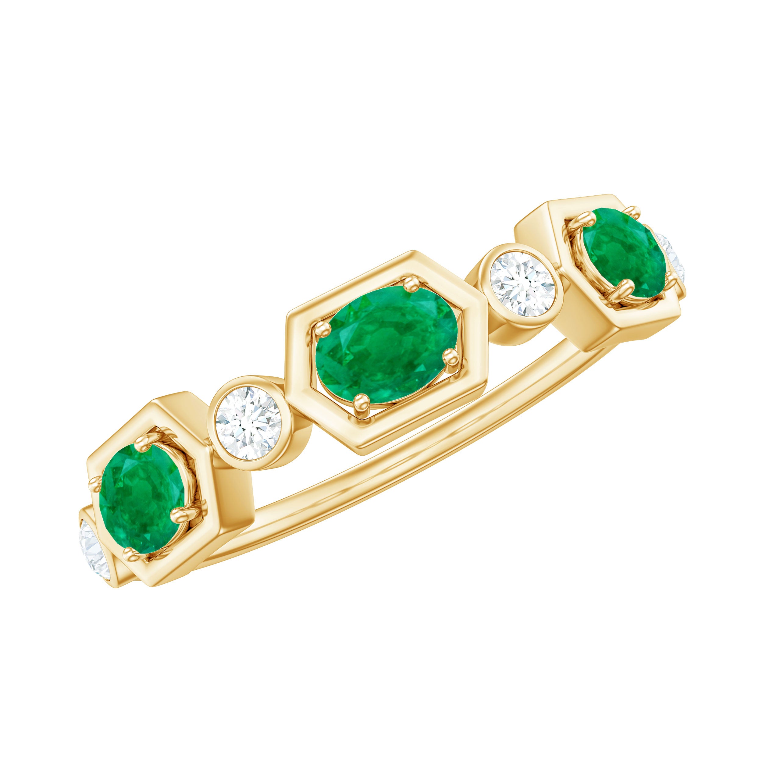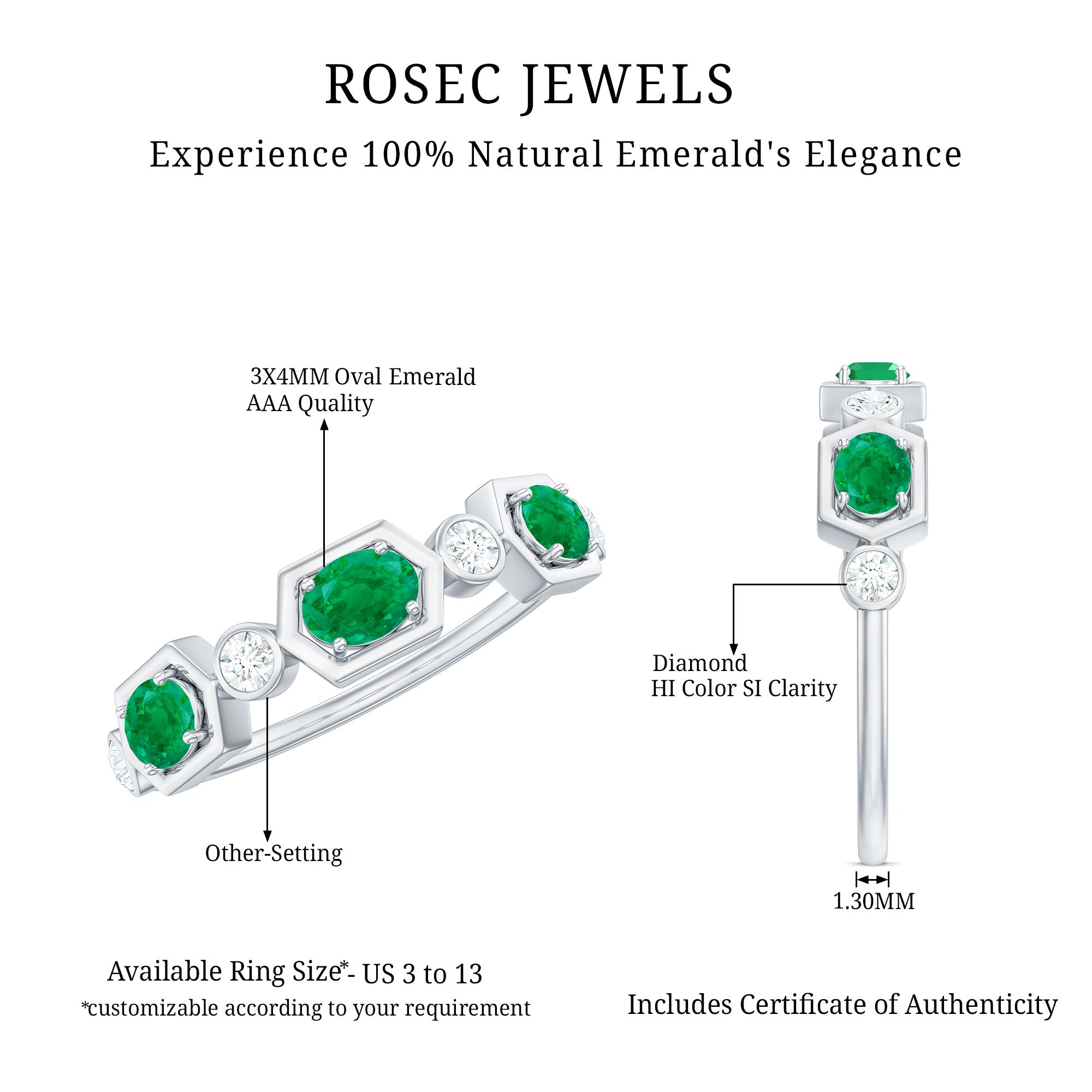 Classic Oval Emerald Diamond Half Eternity Band Ring in East West Style
