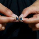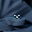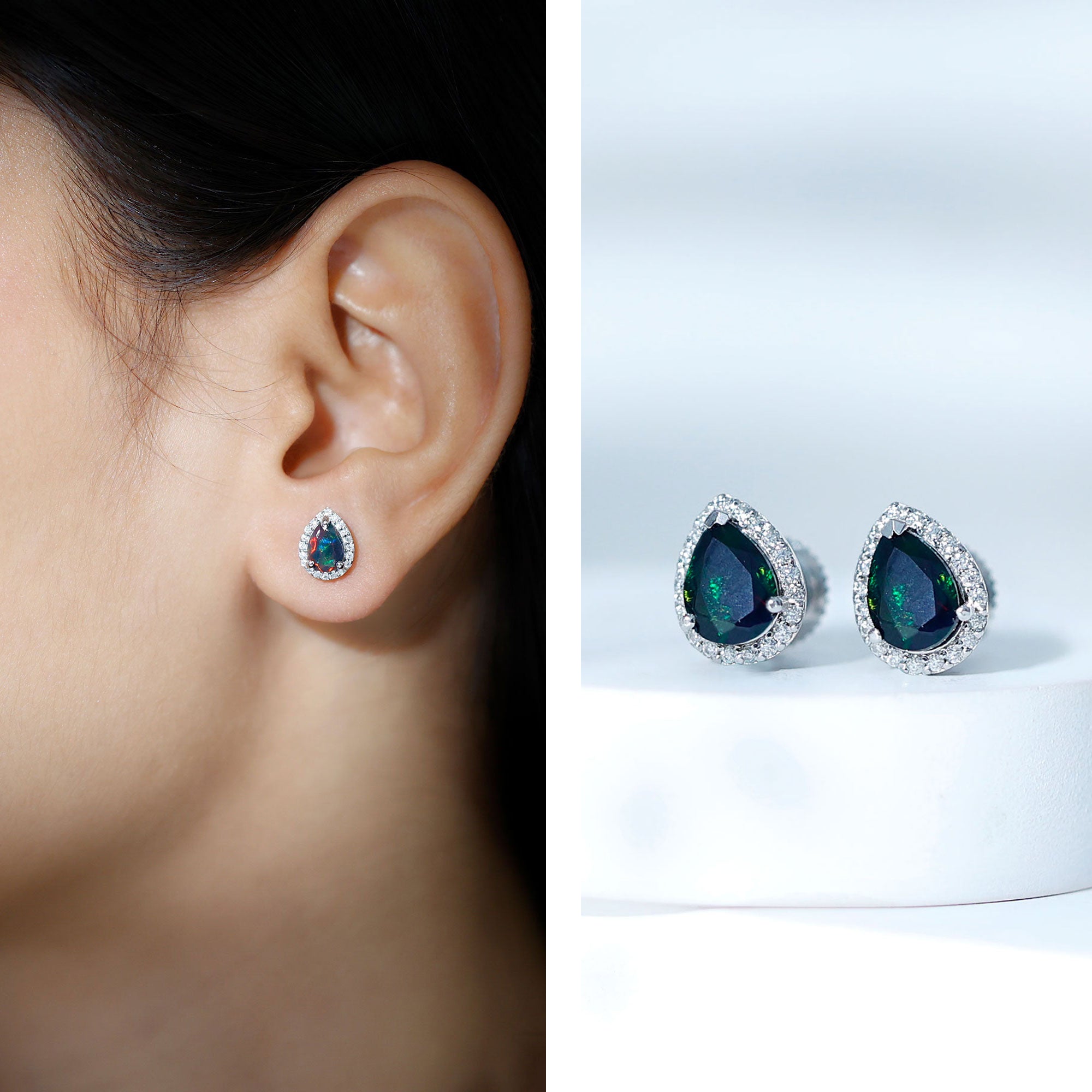 Classic Pear Cut Black Opal and Moissanite Halo Stud Earrings