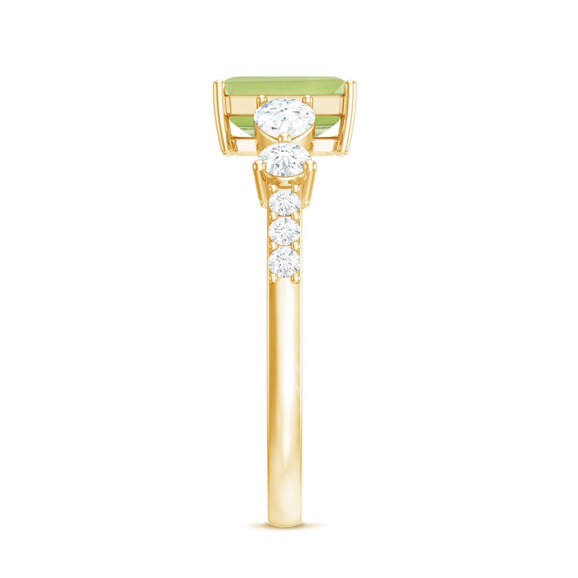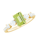 Put a stylish spin on your look by wearing this awesome Solitaire Ring embellished with Octagon Cut Peridot in Prong Setting with Round and Pear Cut Moissanite Side Stones. Crafted with Gold, this Peridot Ring will bring more shine and allure to your look. This Peridot Stone Ring will make you look out from the crowd.